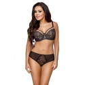 Mäkká podprsenka. vrchná časť košíčkov je vyrobená z béžového tylu. medzi košíčkami je ozdobný korálik. boky sú z pevnej látky, ramienka nie sú odnímateľné. k súprave sú k dispozícii nohavičky a tangá.