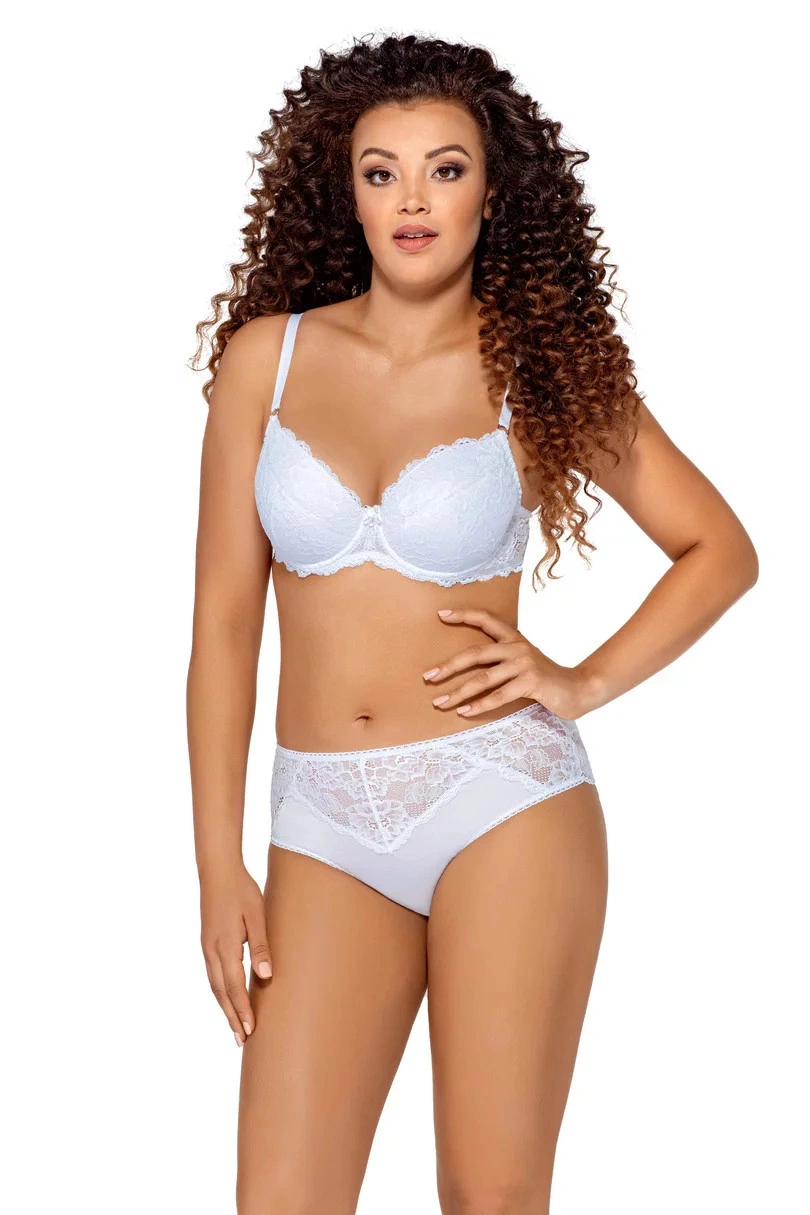 Podprsenka predstavuje spojenie jemnosti a nevinnosti s dokonalou konštrukciou a neoceniteľným pohodlím. Tento neobyčajný model typu „push-up“ nielen ideálne obopína a nadnáša poprsie, ale aj ho opticky zväčšuje. Košíčky sú vyrobené z peny, sú pokryté bavlnou a zahalené peknou lesklou čipkou s kvetinovým motívom. Ramienka je možné nastaviť aj odopnúť.