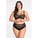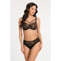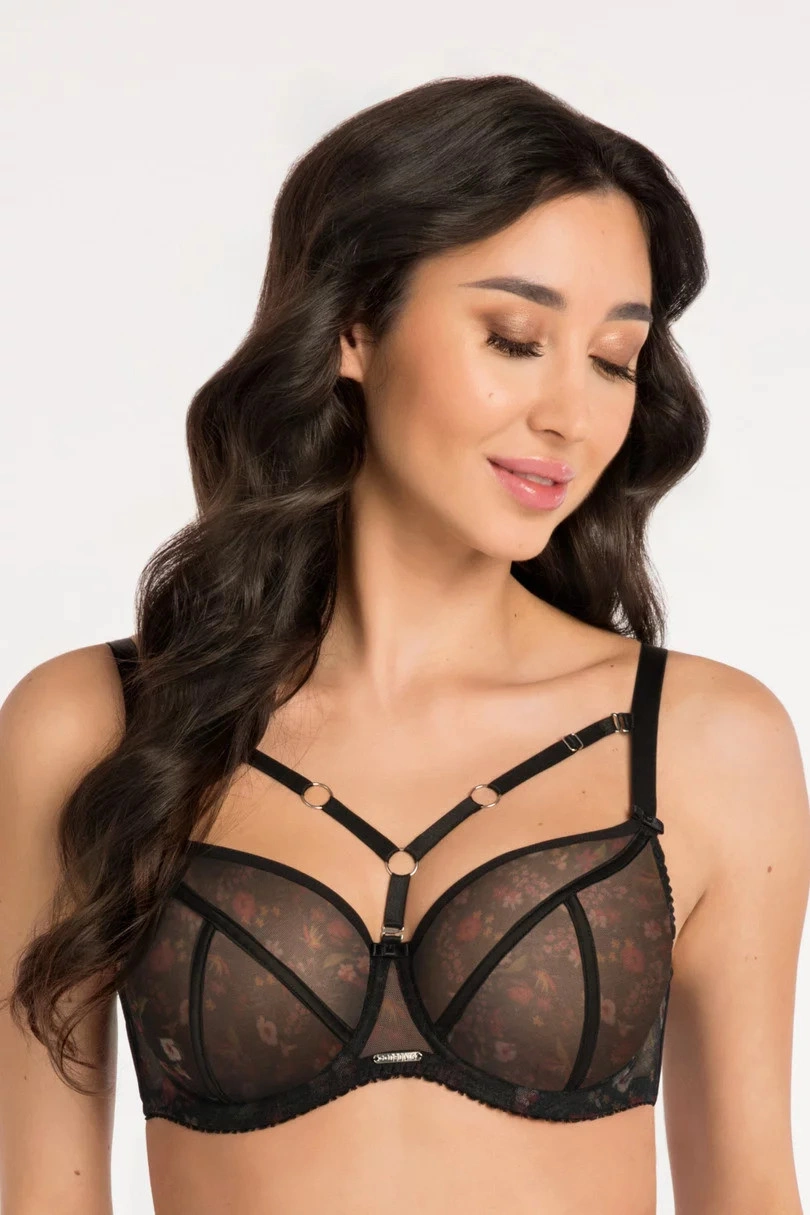 Mäkká podprsenka určená pre ženy so stredne veľkými, veľkými a veľmi veľkými prsiami. Poskytuje veľmi silný zdvíhací a dovnútra sťahujúci účinok na prsia. 3-dielne košíčky vyrobené výhradne z potlačeného tylu podšité stabilným tylom. Horný okraj košíčkov plynule prechádza do pásu. Odnímateľné a nastaviteľné ramienka vo výstrihu. Zadná časť z priehľadnej lycry, ktorá poskytuje veľmi dobré prispôsobenie a podporu. Bočné kostice zabraňujúce vyhrňovaniu materiálu. V závislosti od veľkosti dvojradové alebo trojradové zapínanie na háčiky s trojstupňovým nastavením obvodu. Neodnímateľné, nastaviteľné ramienka v troch šírkach. Kovové prvky v striebornej farbe.