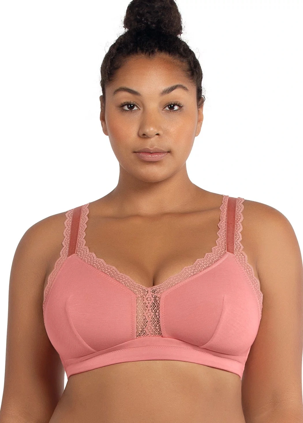 Dámska Bezkosticová braletka od britskej značky Parfait špecializujúca sa na ženy s veľkosťou D +. Podprsenka je vyrobená z veľkého podielu modalu s prímesou elastanu a tým využíva vlastnosti, ako je dokonalá jemnosť, pružnosť, stálofarebnosť aj po niekoľkonásobnom praní, vysokú odolnosť a pod. Má veľmi dobrú nasiakavosť a schopnosť rýchlo odvádzať pot od povrchu tela, čo přispává k príjemným pocitom pri nosení. Braletka má krajkové obvody okolo košíčkov, ktoré prechádzajú až k ramenám. Ramienka sú ľahko dĺžkovo nastaviteľné, v zadnej časti sa dajú ramienka skrížiť pomocou háčika na sponách. Obvod spevňujú pružné bočné kostice. Obvod je ukončený po spodnom obvode všitú gumičkou. Zadné zapínanie je na štyri háčiky a tri pozície. Podprsenka je veľmi príjemná na tele v športovo-elagantním dizajnu a je vhodná na každodenné nosenie pri zachovaní komfortu každej ženy.