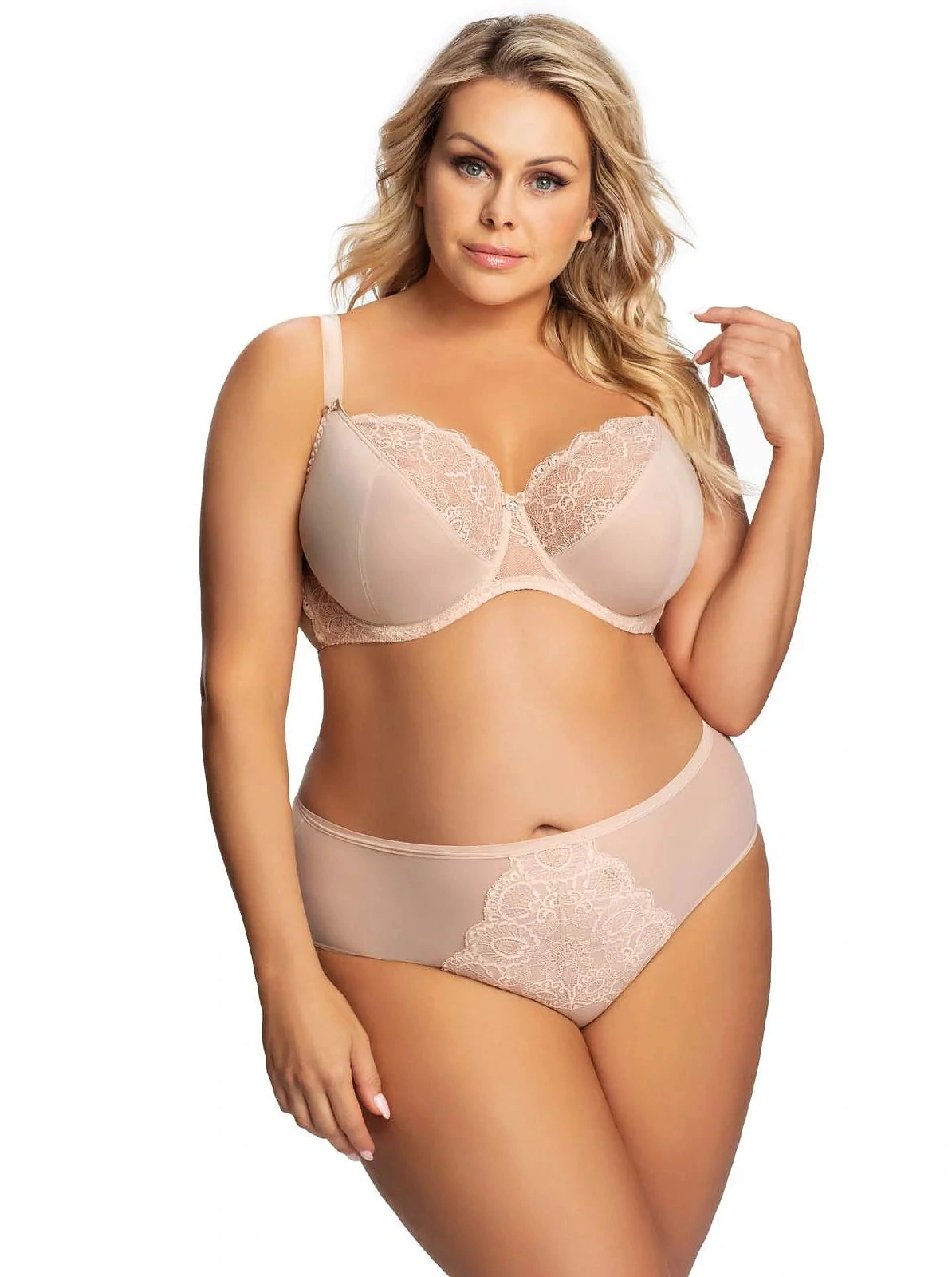 Spodná časť košíčkov je vyrobená z hladkého a stabilného materiálu. Vrchnú časť košíčkov lemuje čipka. Spojenie kostíc zdobí mašlička a bižutérny prvok. Ramienka je možné nastaviť, ale nemožno ich odopnúť. Obvod podprsenky je spevnený bočnými kosticami a zapína s dvoma, alebo tromi háčikmi s trojou možnosťou nastavenia jeho dĺžky.