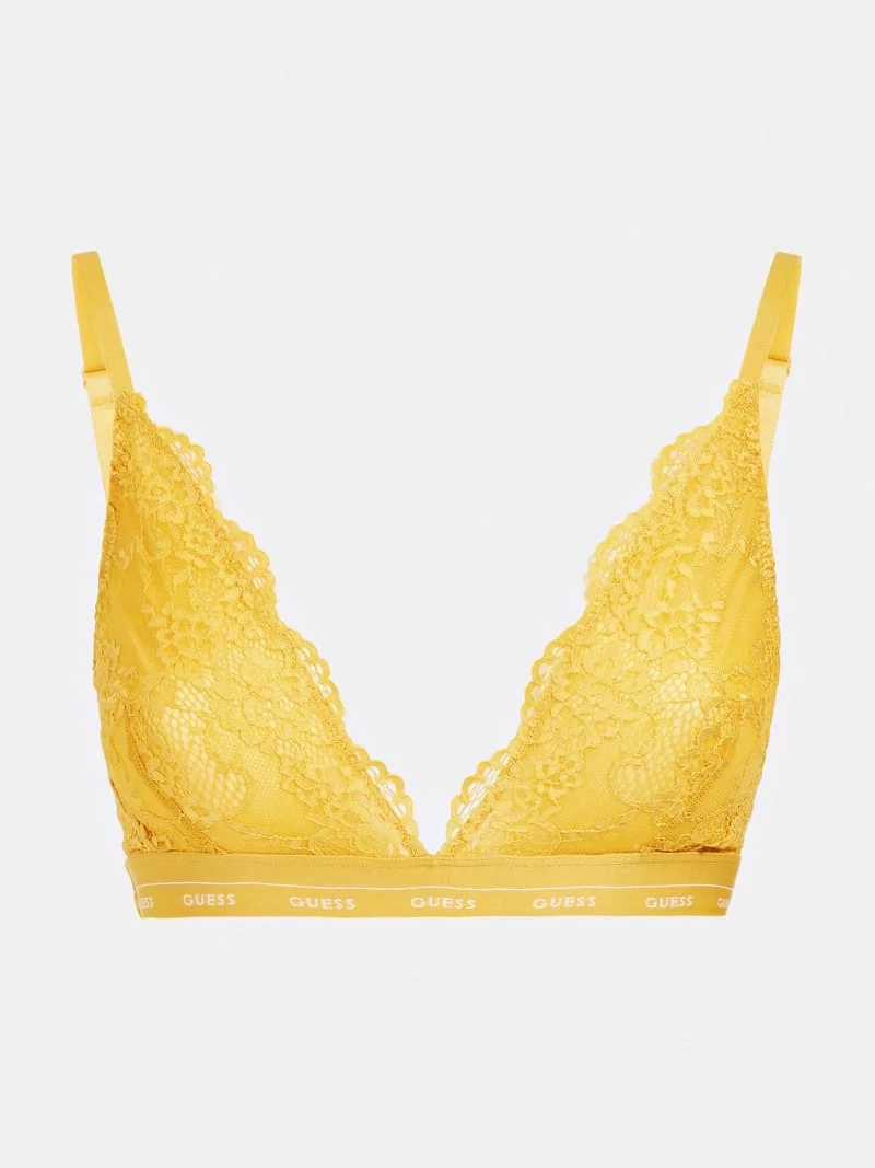 Úžasná podprsenka bralette značky Guess v horčicovej farbe s potlačou loga. Zaručuje úplné pohodlie a dokonalý vzhľad.