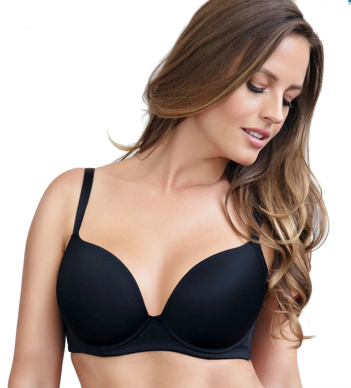 Novinková plunge podprsenka EMMA od značky PARFAIT. Bezšvíkové, muldované a veľmi jemne spracované košíčky, nastaviteľné ramienka s možnosťou odopnutia a zapnutia na chrbte do kríža a obvod zapínateľný na dva háčiky v troch líniách. Podprsenka vytvára poprsie guľatý tvar a krásny hlboký plunge dekolt a to až do veľkosti košíčkov I (EÚ) a obvodov 100cm! Dizajn v jemnom lesklom Micru vyzdvihuje jednoduchú, ale technicky vybrúsenou líniu najdôležitejšie podprsenky v dámskom šatníku.