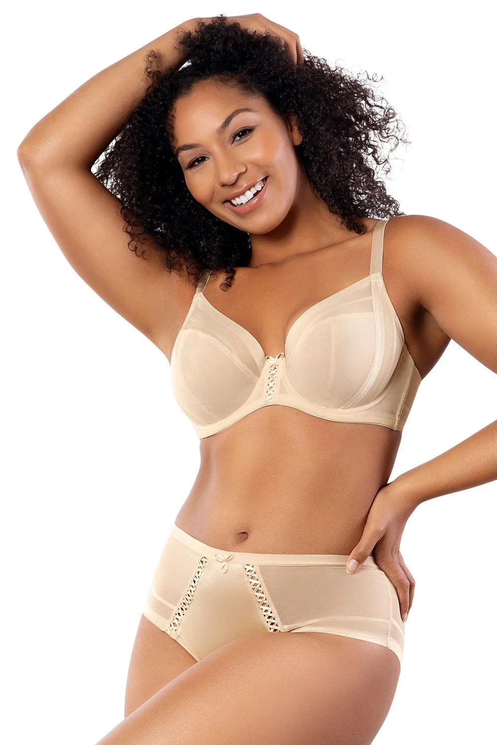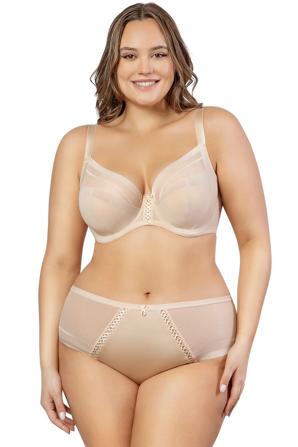 Podprsenka od spoločnosti Parfait. Model P6062. Zvislé veľrybie kosti vsadené do bokov. Výrobok má nastaviteľné popruhy bez možnosti odpojenia. Podprsenka so zapínaním na háčik a očko. Miesto pripevnenia: vzadu. Dva rady vertikálnych háčikov. Tri úrovne horizontálnych háčikov. Výrobok je vyrobený z 58 % polyamidu a 42 % spandexu. Bočné strany vystužené tkaninou. Bezšvová úprava okrajov. Produkt pre ženy.