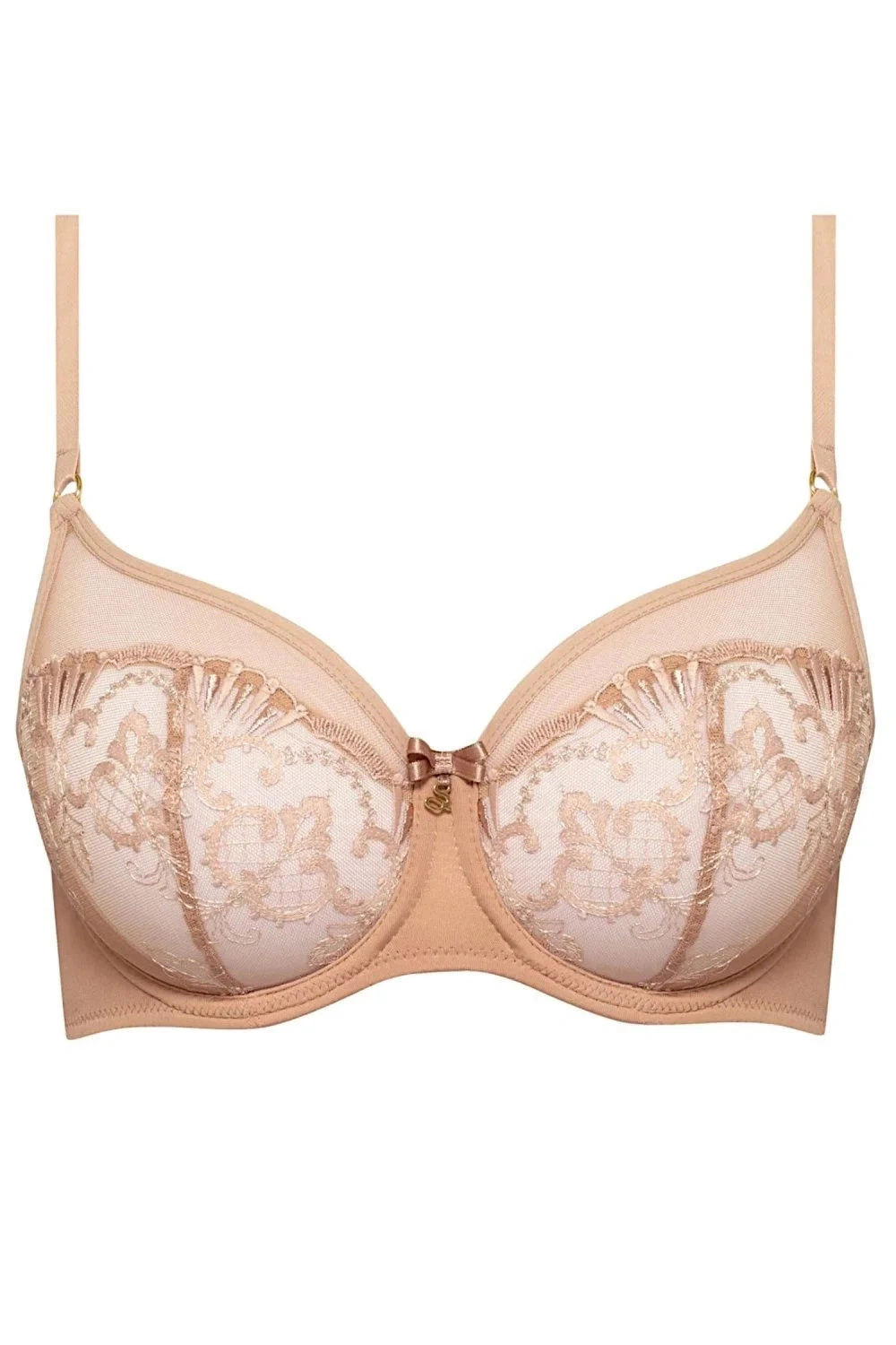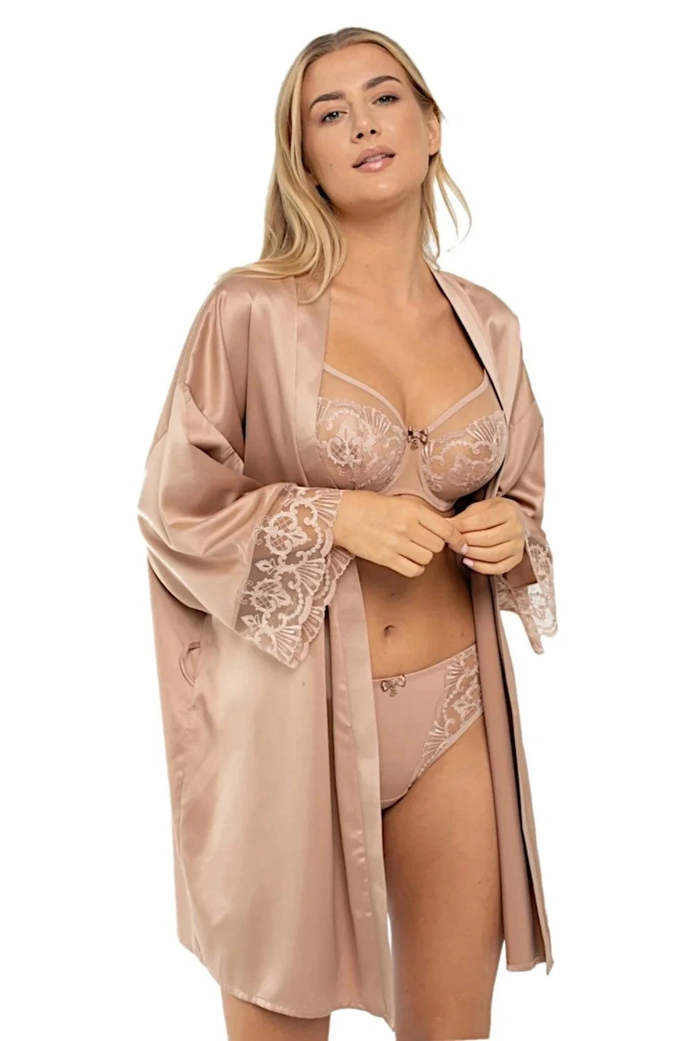 Dámska podprsenka Perla A143 cappucino Samanta - farba cappucino - mäkký typ - vyšívaný kvetinový motív - košíčky podšité hladkým tylom - kostice - nastaviteľné a neodnímateľné ramienka - zapínanie na dva háčiky s trojstupňovým zapínaním - certifikát Oeko-Tex STANDARD 100®