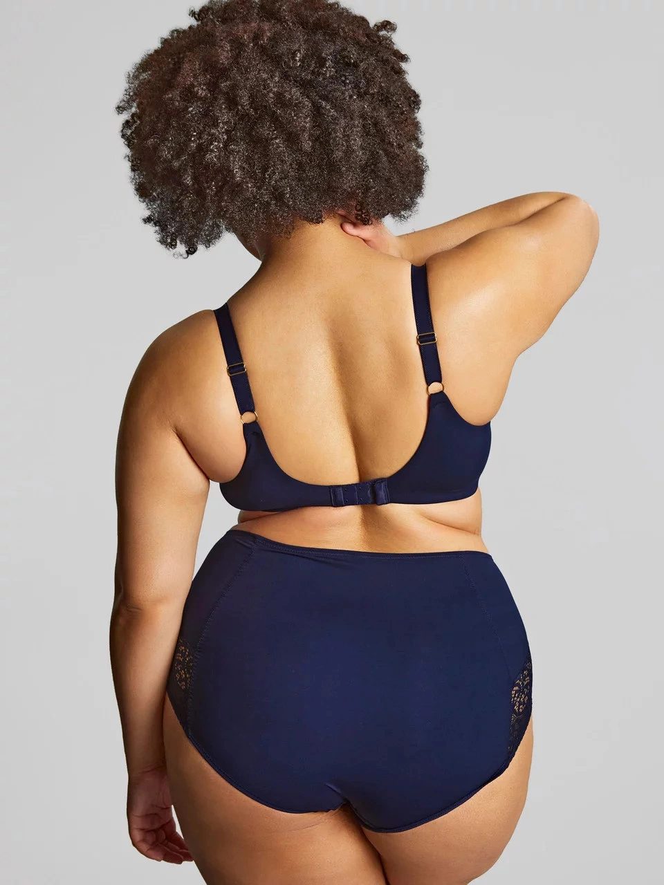 Táto očarujúca podprsenka od značky Panache, inšpirovaná vzormi z Blízkeho východu, vnáša do sortimentu exotický a očarujúci nádych. Čipkované košíčky majú kostice, nie sú vystužené, širšie ramienka sú nastaviteľné a k dispozícii je 3-polohové zapínanie na 2 háčiky. K podprsenke odporúčame nohavičky 9684 z rovnakej kolekcie.
