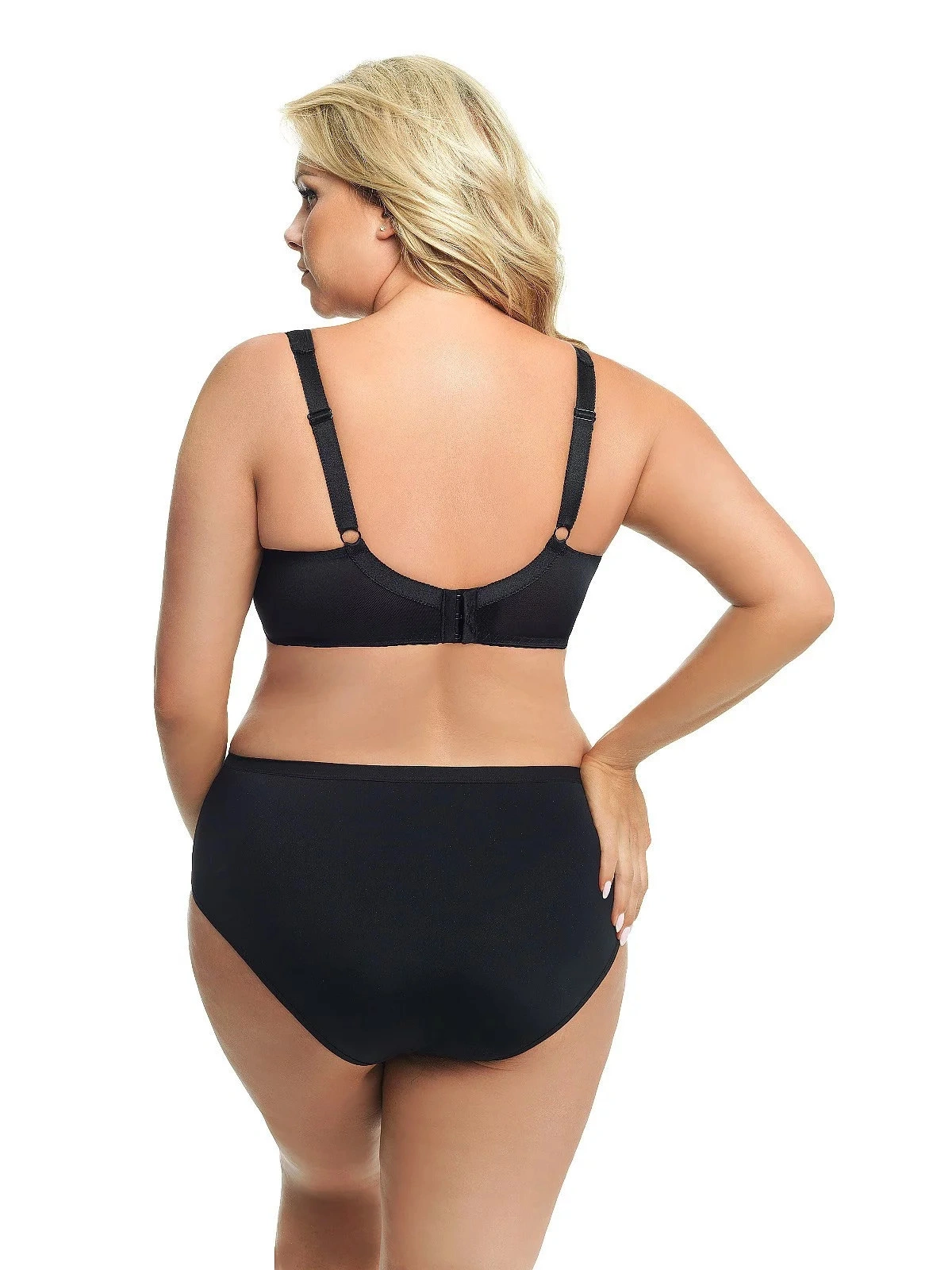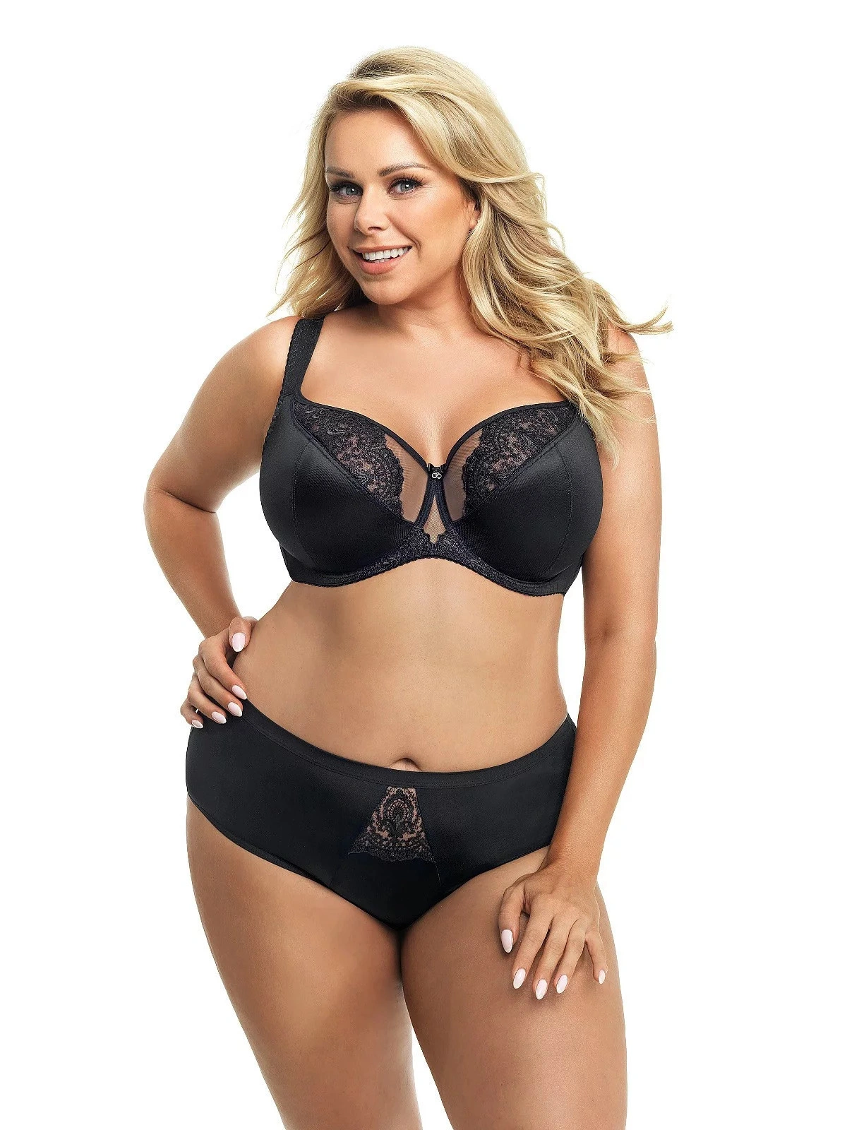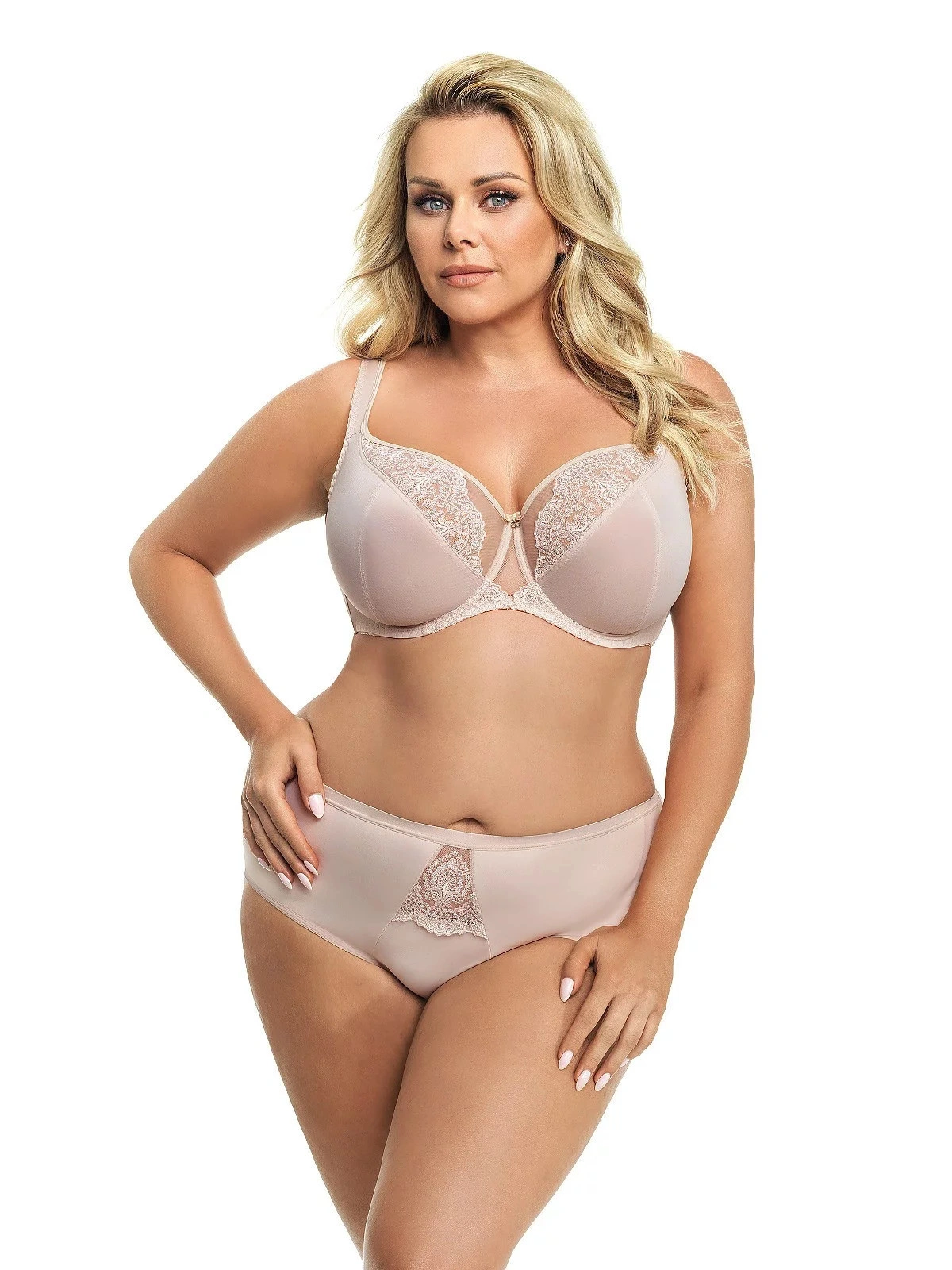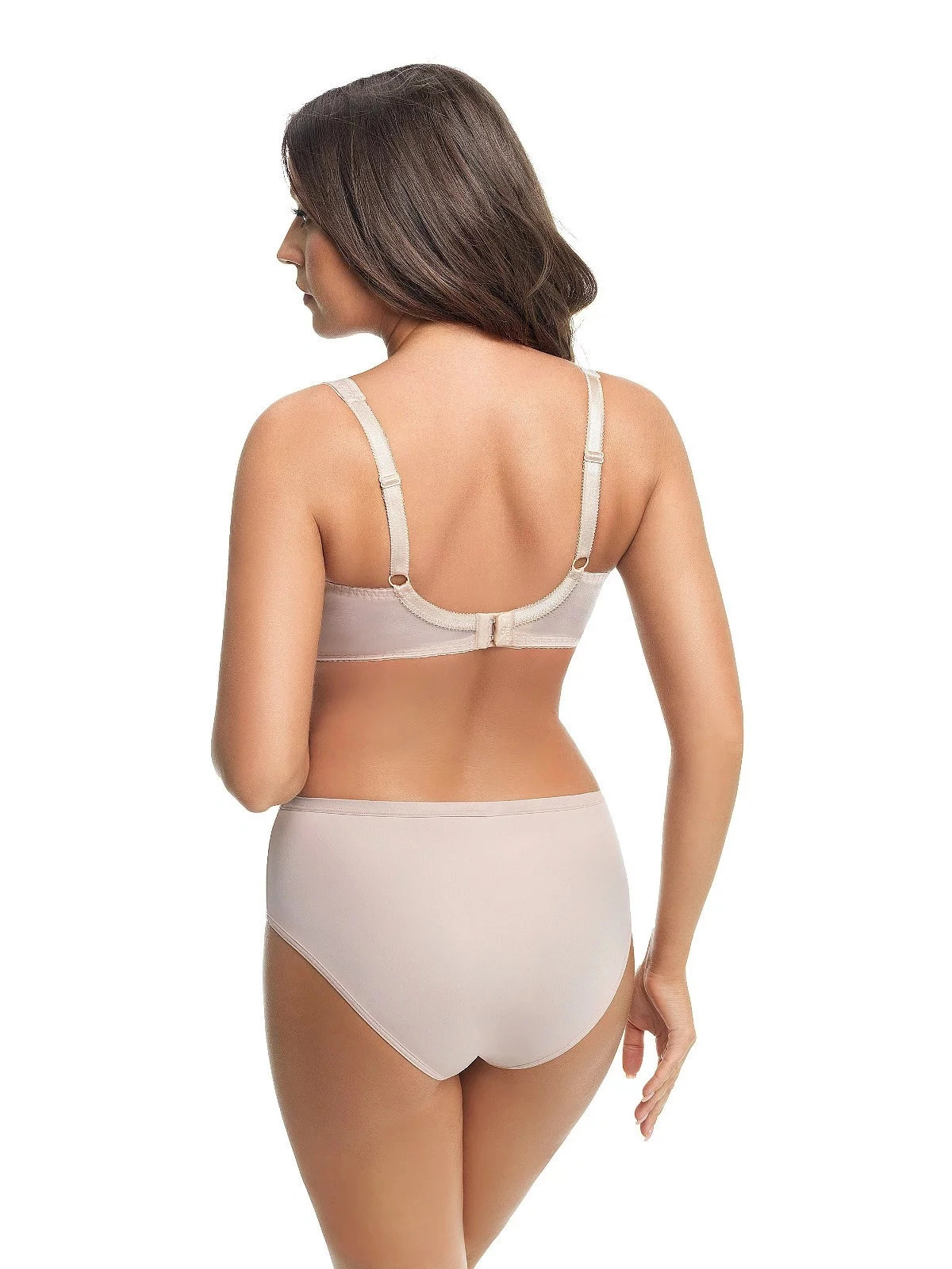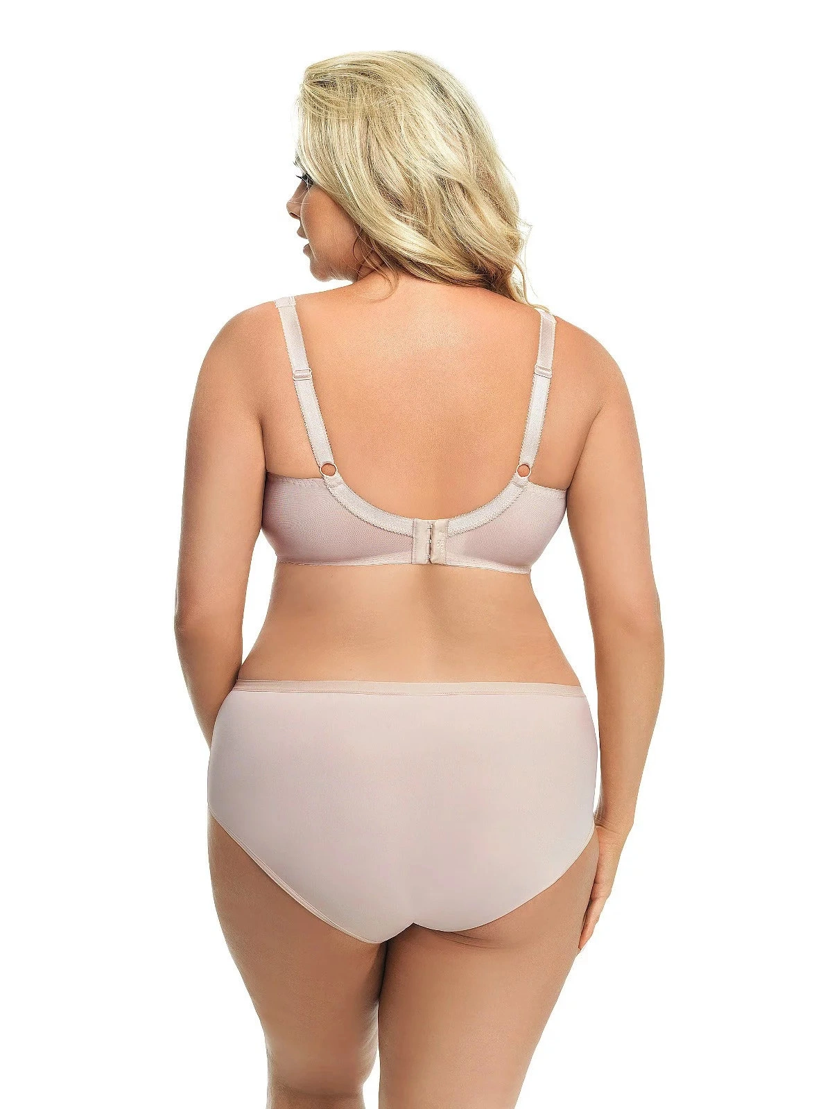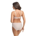 Podprsenka má mäkké košíčky s kosticami. V hornej línii modelu je jemná sieťovina ozdobená výšivkou. V mieste spojenia košíčkov je saténová mašlička. Boky modelu sú spevnené zvislými kosticami a sú ušité z pružnej lycrové tkaniny, ktorá sa pri nosení nevyťahuje. Široká pohodlná ramienka sú podšitá látkou. Dĺžku ramienok je možné nastaviť. Model ideálne nadnáša poprsie a poskytuje mu oporu.