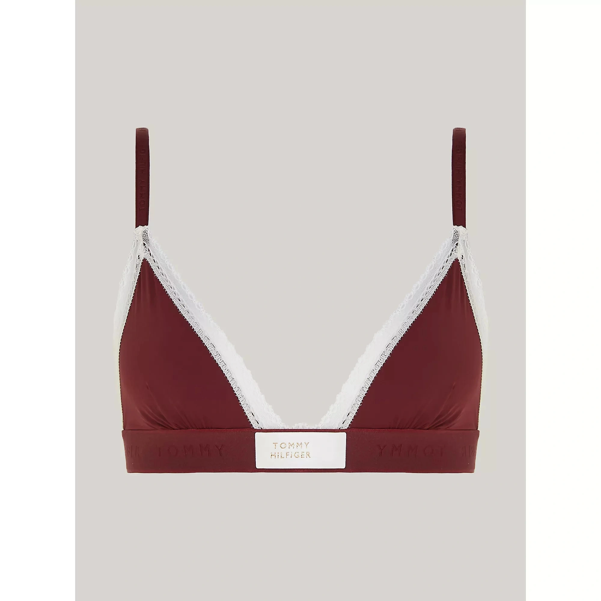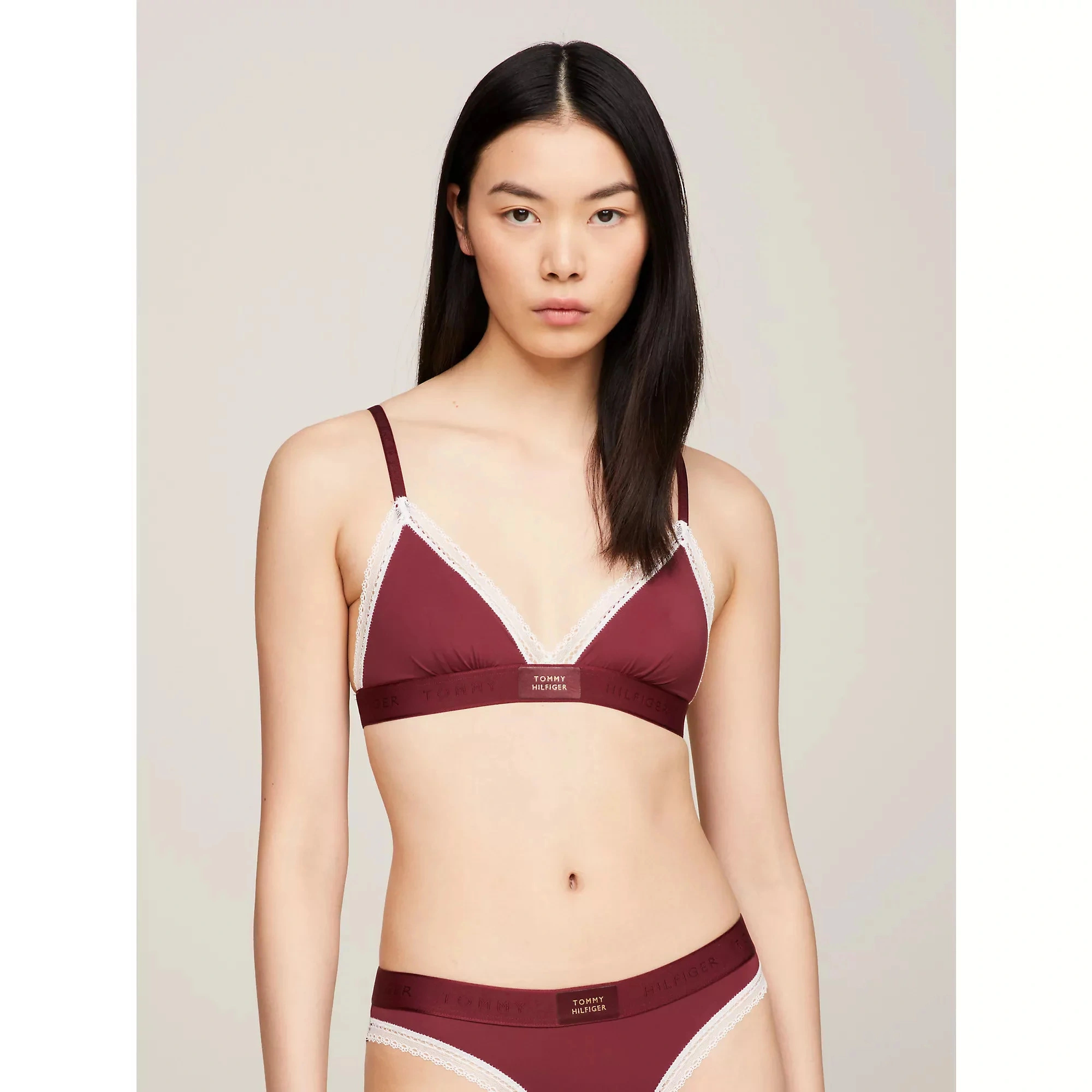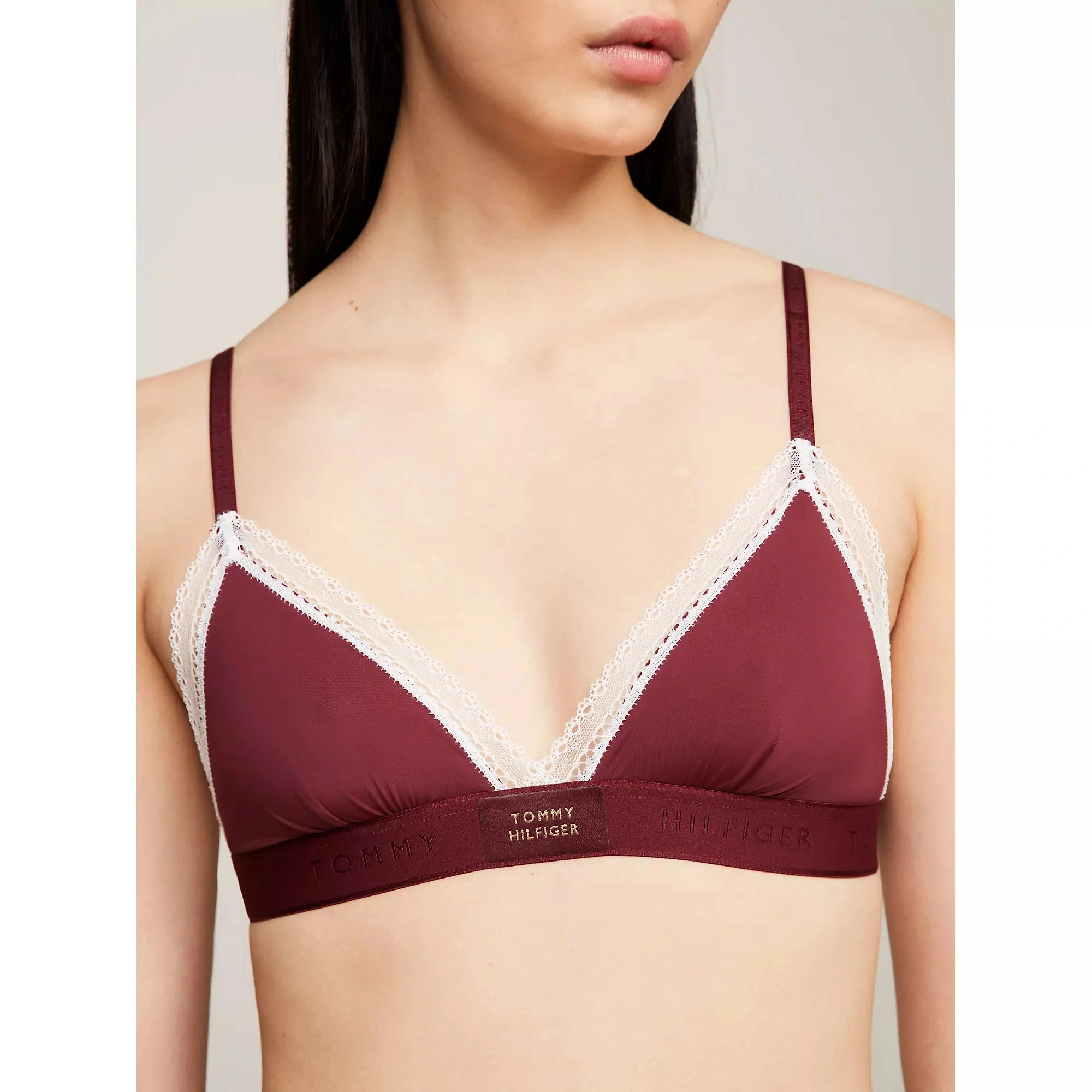 Táto nepodšitá trojuholníková podprsenka, zdobená jemnými čipkovanými detailmi na košíčkoch, je vyrobená z elastickej tkaniny, ktorá pohodlne padne.