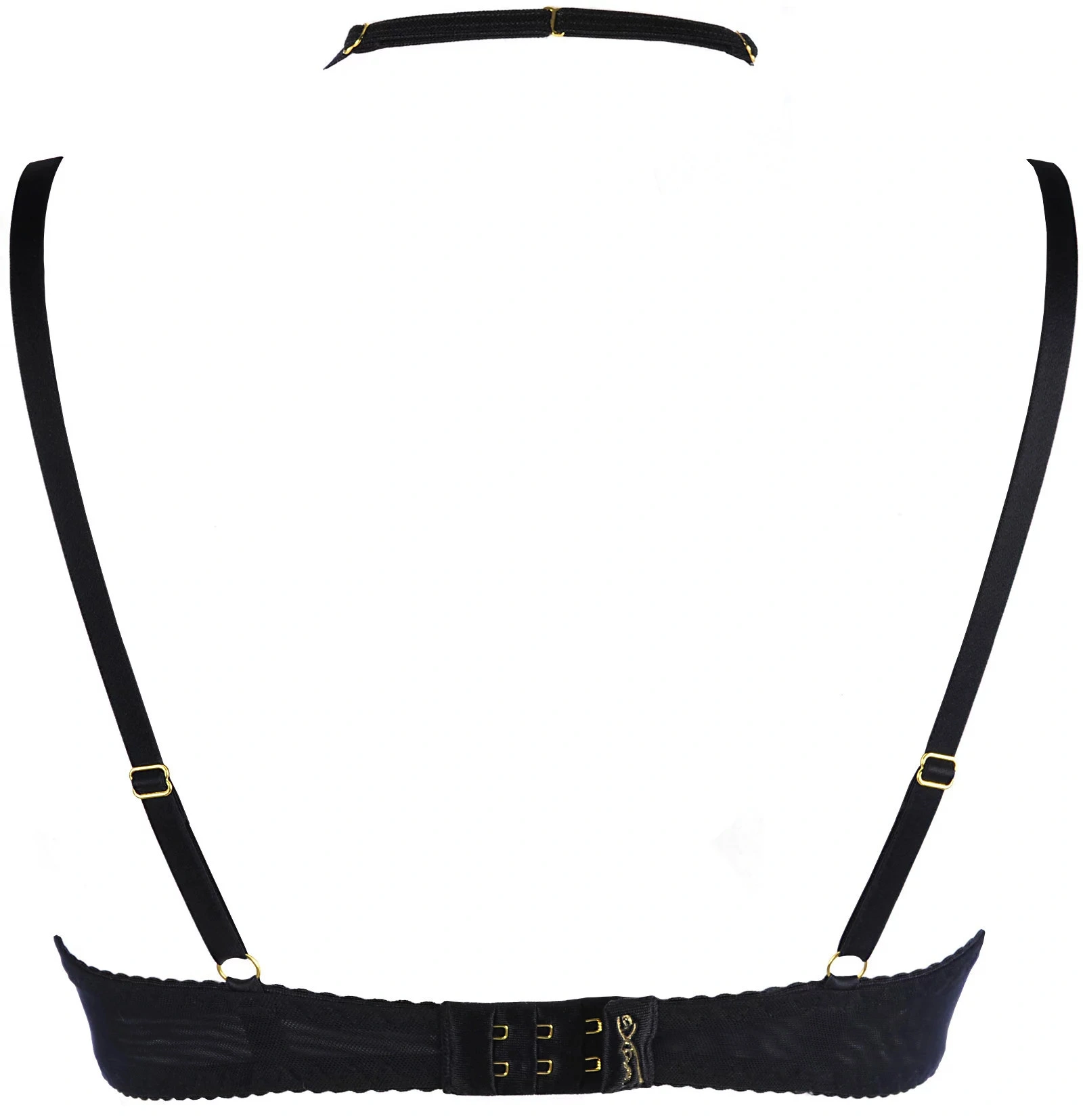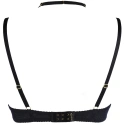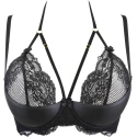 Úžasná, zvodná čierna podprsenka peek-a-boo upúta pozornosť štruktúrou látky - jemnou čipkou s príjemným povrchom a neodnímateľnou mašľou medzi košíčkami. Popruhy sú nastaviteľné, ale nie odnímateľné, zapínajú sa na dva háčiky. . Žiadne bočné kostice, žiadne vypchávky košíčkov.