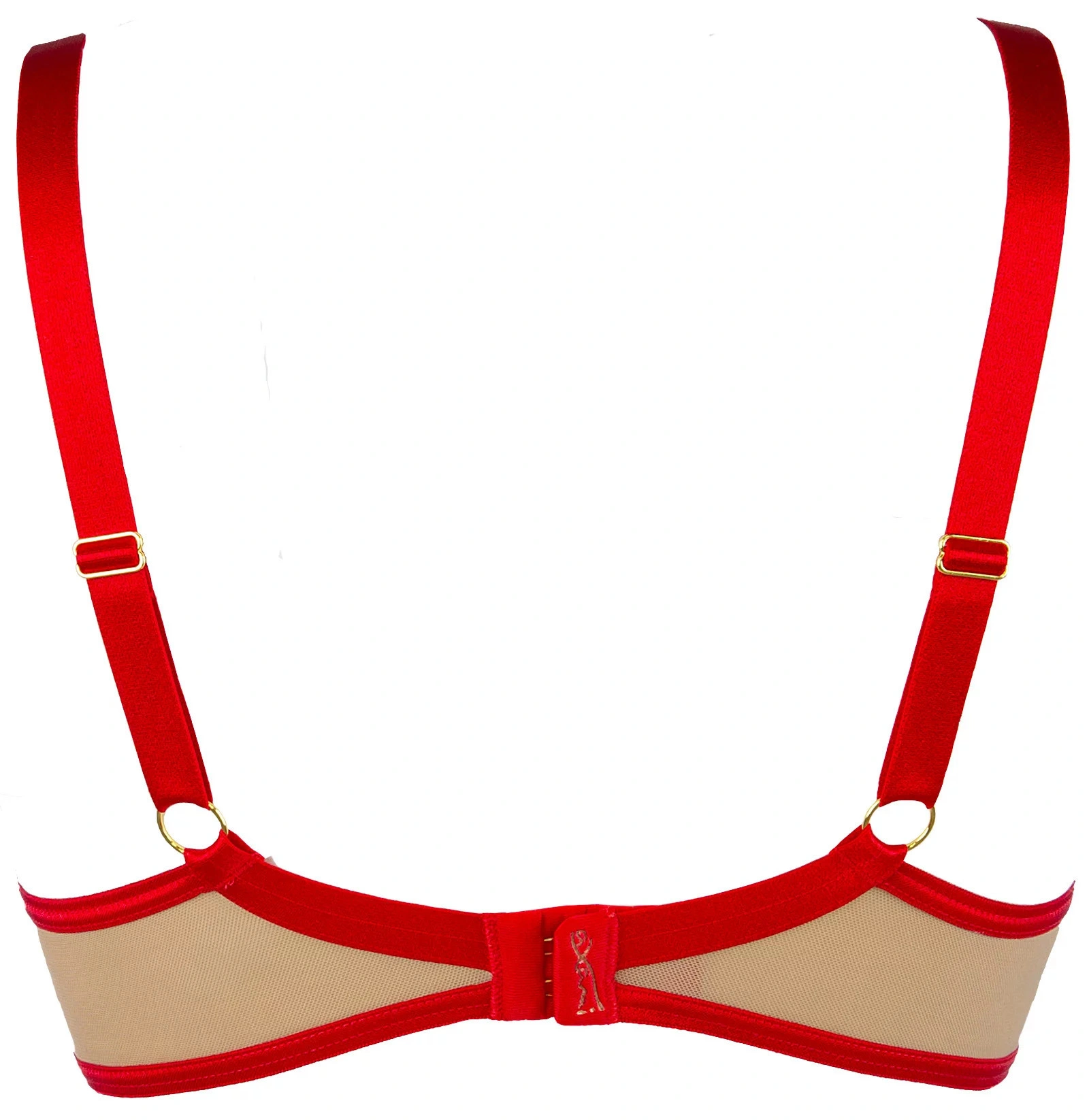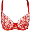 Táto mäkká podprsenka očarujúca jemnou výšivkou je určená pre ženy, ktoré oceňujú sofistikovaný dizajn a najkvalitnejšie tkaniny. Balkónový strih nádherne zvýrazňuje krásu dekoltu a mäkké tkaniny hladia pokožku. Tento strih je ideálny pre väčšie veľkosti poprsia, poskytuje ideálne pohodlie a rozkošný vzhľad. Kombinácia béžového pozadia a ženskej červenej výšivky dodáva celku šarm.