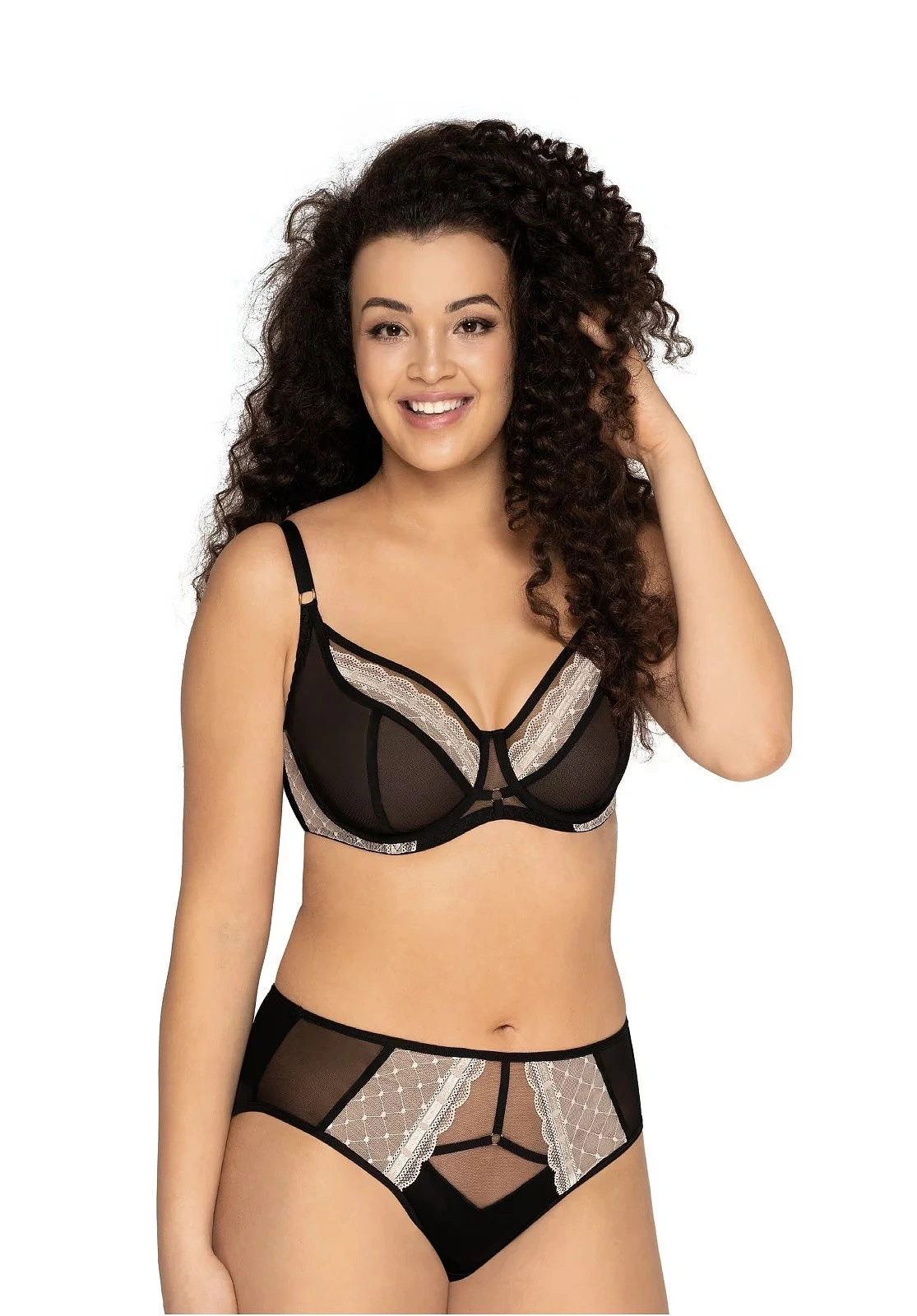 Podprsenka je vyrobená zo sieťoviny a čipky. Košíčky s kosticami sú do polovice vystužené a vnútri sú pokryté bavlnou. V mieste spojenia košíčkov sú ozdobné pásiky. Obvod modelu je ušitý z pružnej lycrové tkaniny, ktorá sa pri nosení nevyťahuje. Ramienka je možné nastaviť, ale nemožno ich odopnúť. Podprsenka má strih a konštrukciu typu 925.