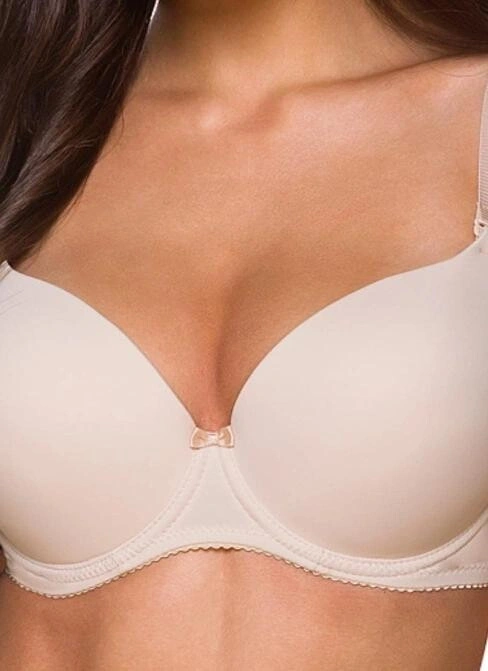 Elegantná béžová dámska podprsenka s vytvarovanými košíčkami s gélovými vypchávkami, ktoré krásne nadnáša a stabilizujú poprsie.