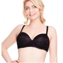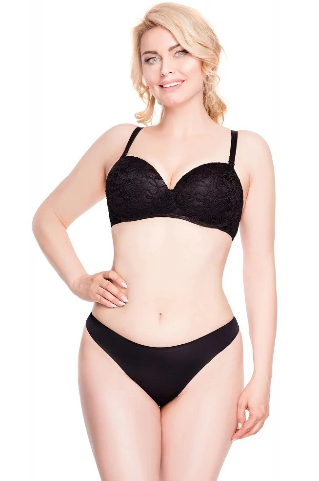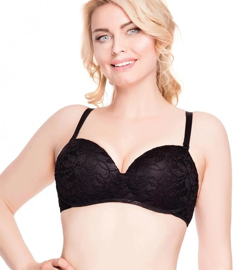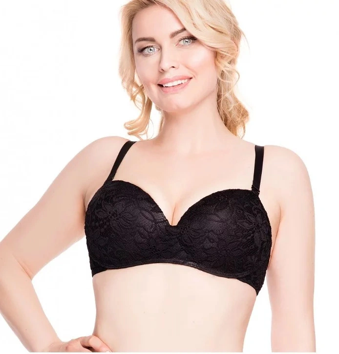 Push-up podprsenka bez kostice- tepelne tvarované košíčky- z čipky s kvetinovým motívom- nastaviteľné, neodnímateľné ramienka- trojpolohové zapínanie na dva háčikyZloženie: 90 % polyamid, 10 % elastan