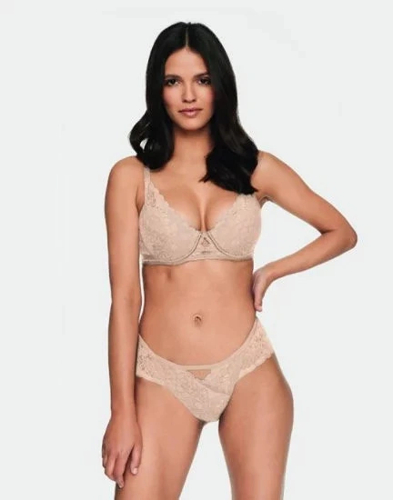 Košíčky sú spevnené kosticami. Push-up vypchávky je možné vybrať. Model HINT je ozdobený čipkovými vsadkami. Košíčky sú pokryté čipkou.