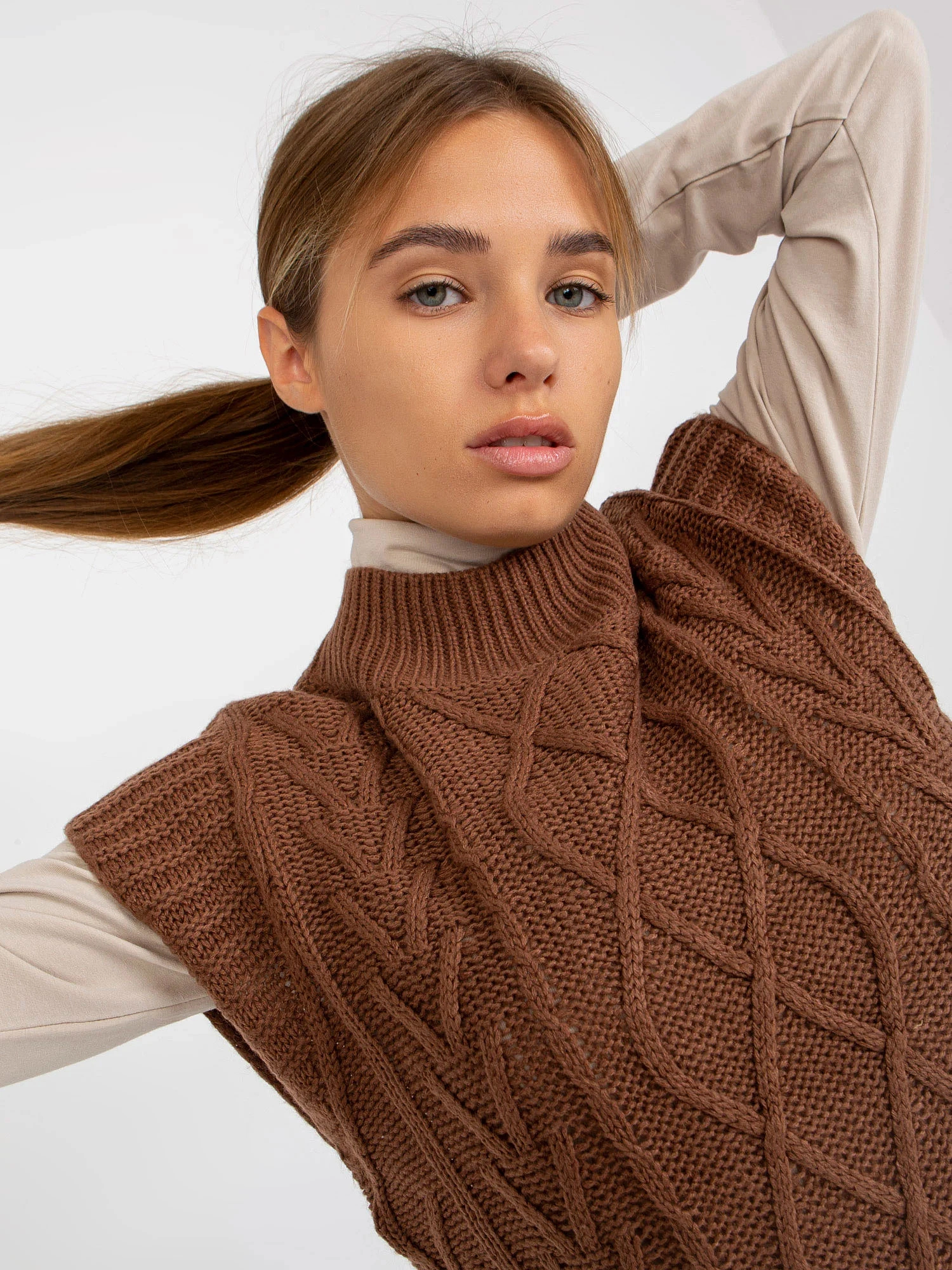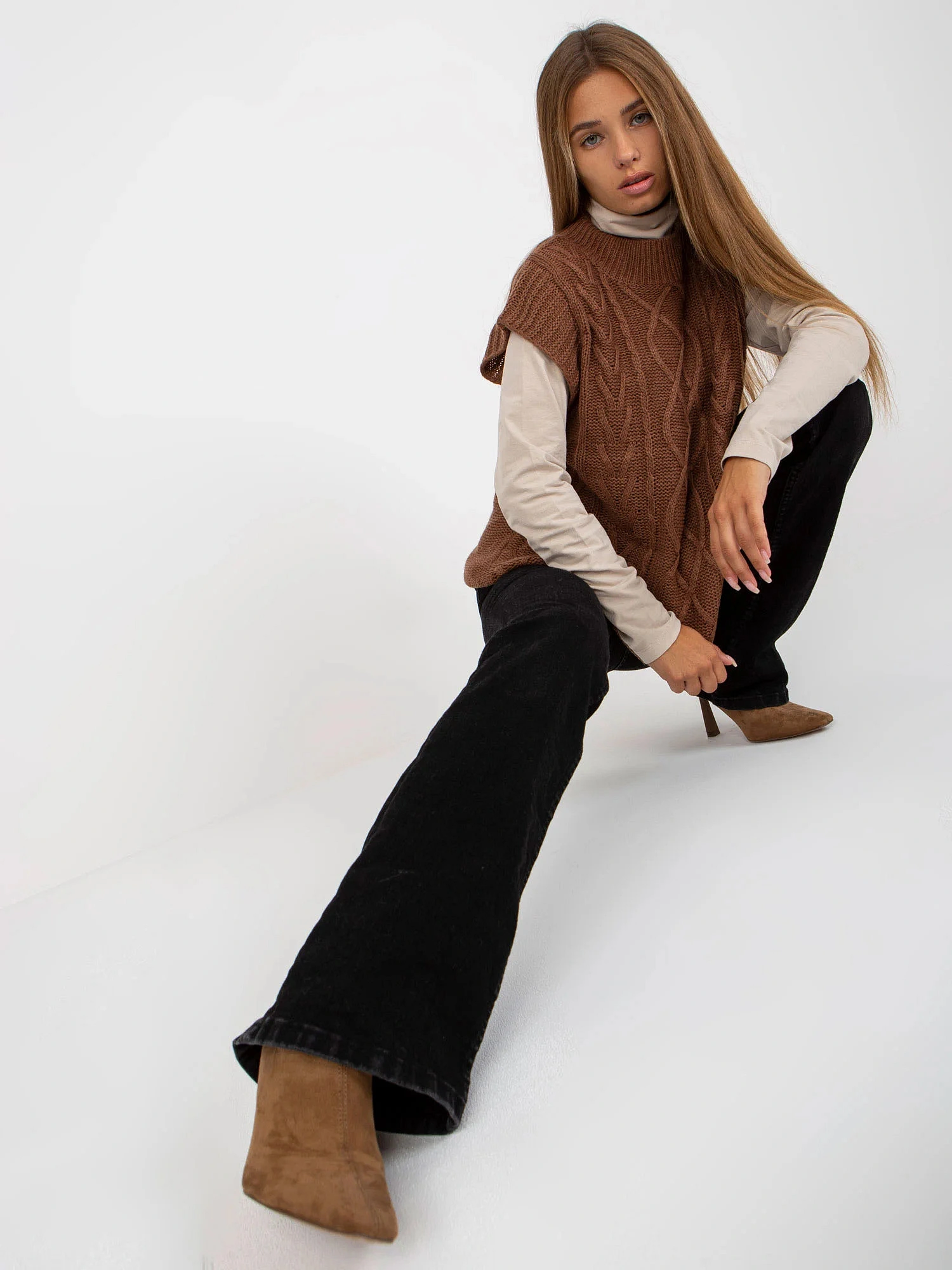 Hnedá pletená vesta s vrkočmi PODLAHA .