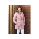 Dámska zimná bunda má kapucňu na šnúrky s odnímateľnou kožušinou. Šírku pása možno upraviť pomocou prídavných šnúrok, rovnako ako spodnú časť kabáta.Na prednej strane kabáta sú dve funkčné vrecká, rukávy sú zakončené všitou nášivkou s otvormi na palec. Bunda je tiež vybavená vnútorným náprsným vreckom. Vnútorná kožušina vám v zime poskytne skvelý pocit tepla.Zaobstarajte si tento módny kúsok do svojho šatníka.