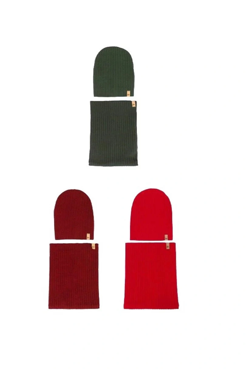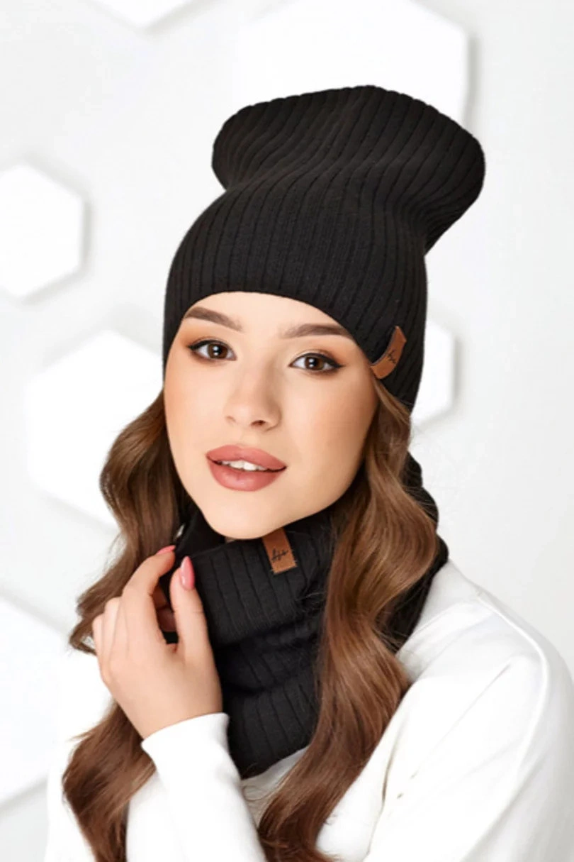 Dámska súprava pozostávajúca z vlnenej čiapky a komínového šálu (nákrčníka).