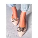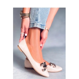 Elegantné dámske baleríny. Model sa vyznačuje zlatou aplikáciou na prednej strane, ktorá dodáva jedinečný štýl..... Topánky vyzerajú módne a elegantne, navyše sú veľmi pohodlné - majú mäkkú vnútornú stielku s vankúšikom. Vonkajší materiál - ekologická koža.