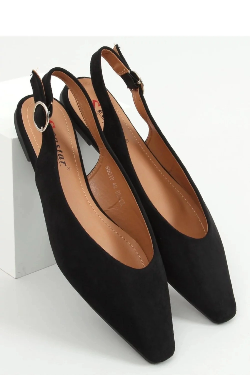 Dámske semišové baleríny s otvoreným podpätkom. Model má najmódnejší strih s hranatým nosom a ozdobnou sponou na boku. Určite budú ozdobou vášho stylingu: ) Tieto topánky si zamilujete! Vonkajší materiál - ekologický semiš.