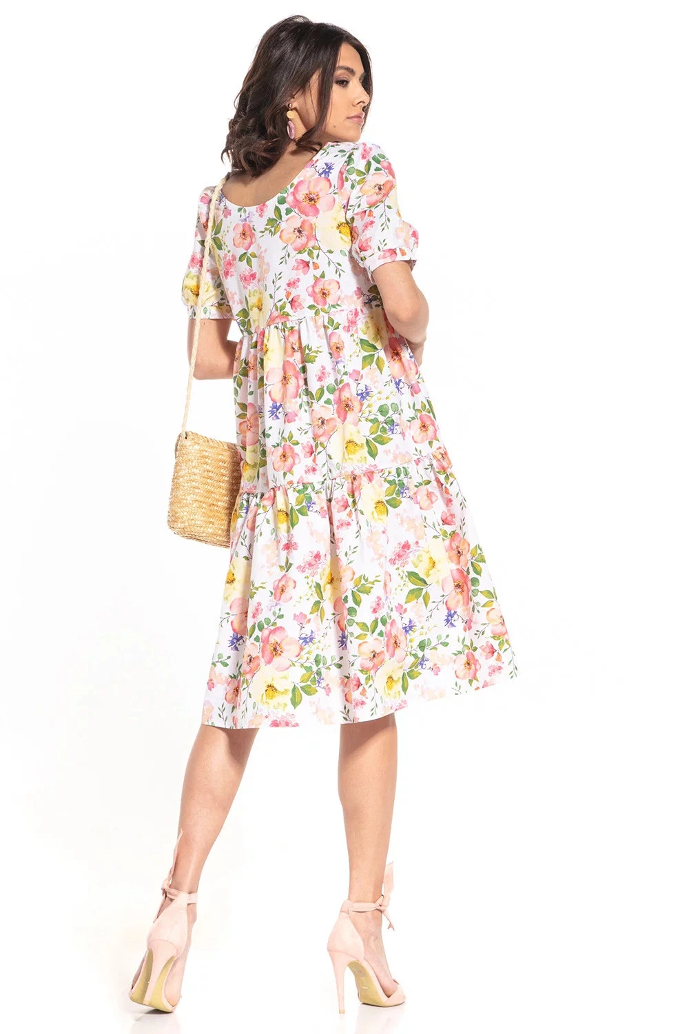 Dámske denné šaty T344/2 - Tessita 46/3XL bílá s květinovým vzorem