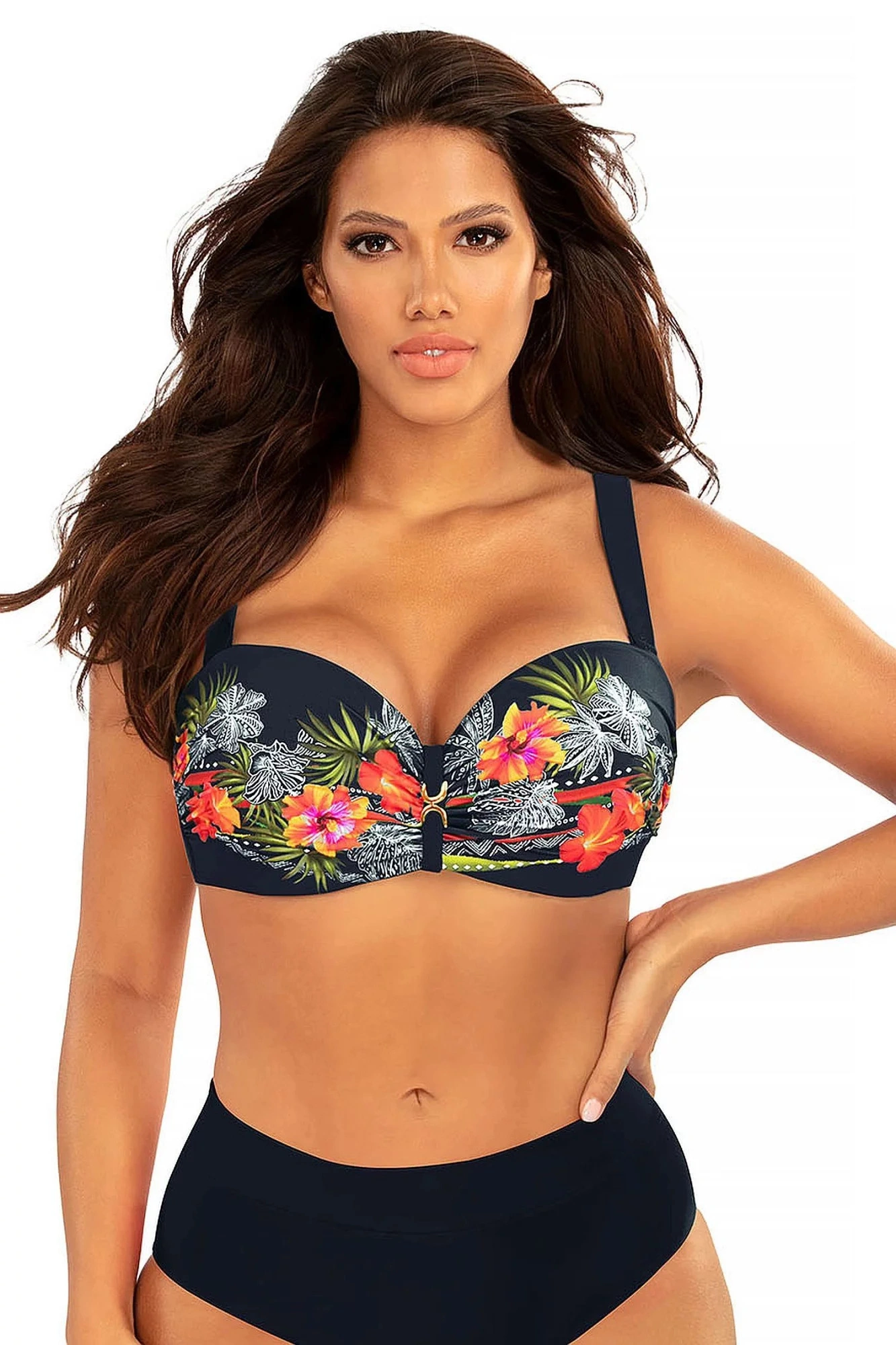 Dámske dvojdielne plavky 780BL3 3 Bali3 Self - plavky sú vyrobené z príjemného, pružného a rýchloschnúceho materiálu - vystužené košíčky s kosticami - horný diel zdobený kvetinovým vzorom - nastaviteľné a odopínateľné ramienka - klasické plnšie nohavičky - kolekcia 2023