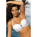 Ak dávate prednosť klasike a overenému štýlu, tak ADALINE si určite obľúbite. Krásny dvojdielny model plaviek. Tvorí je podprsenka strihu balconette a klasické nohavičky. Podprsenka má vystužené košíčky s kosticami. Veľkosti S, M, L a XL majú navyše kapsičky pre odnímateľné vypchávky push-up. Vďaka vypchávkam môžete svoj dekolt lepšie vymodelovať a opticky mu dodať väčšie tvar. Látka na košíčkoch je jemne nariasená. Obvod je hladký a zapína sa pomocou klasickej spony. Ramienka sú tenká, dajú sa ľahko regulovať a tiež úplne odopnúť. Takže môžete plavky nosiť aj bez ramienok a alebo napríklad len s jedným za krk. Medzi košíčkami je ozdobná brošňa predstavujúca morského koníka. Je odopínateľné, takže ju môžete aj zložiť. Nohavičky majú klasický strih zahaľujúce boky i zadoček. Celá vnútorná plocha je podšitá. Na prednej strane je prekrížený pruh s logom výrobcu Marko. Plavky vynikajú svojou elegantnou a nesmrteľnú bielou farbou a doplnkom. Perfektný kúsok pre atraktívne ženy uznávajúci hlavne klasiku.