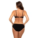 Dvojdielne plavky z elastickej talianskej tkaniny Carvico Tessuti. Obsahuje podprsenku bandeau, ktorá zmyselne tvaruje a zväčšuje prsia, a spodný diel, ktorý opticky predlžuje nohy. Podprsenka sa zapína na chrbte, ramienka nie sú odopínacie. Nohavičky so sexi rázporkom na prednej strane.