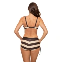 Dvojdielne plavky z talianskej tkaniny Carvico Tessuti. Podprsenka bez push-up, s kosticami zapínanými na chrbte. Vystužené košíčky, nastaviteľné ramienka, neodnímateľné. Nohavičky s nízkou elasticitou, podšité, s bočným zaväzovaním.
