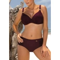 Dvojdielne plavky v športovom štýle z talianskej tkaniny Carvico Tessuti. Podprsenka bez push-up efektov, s kosticami v spodnej časti, pre väčšie poprsie. Podprsenka s hlbokými, pohodlne vystuženými košíčkami, zapínanie na chrbte. Nastaviteľné popruhy, neodnímateľné. Nohavičky sú hladké, podšité a majú pohodlný vyšší strih. Poľský výrobok. Tip: objednajte si väčšiu veľkosť ako obvykle.