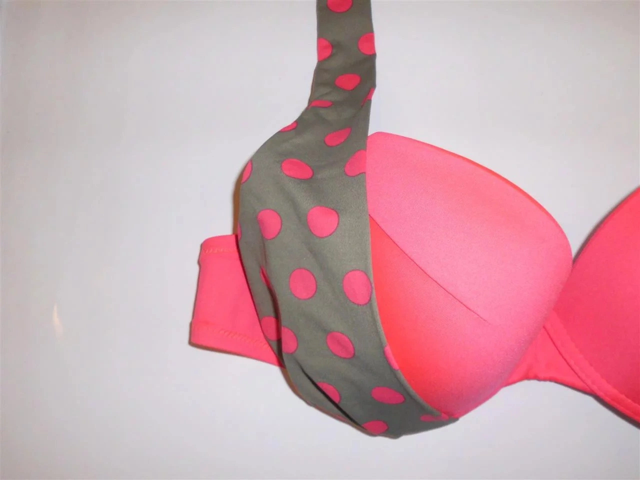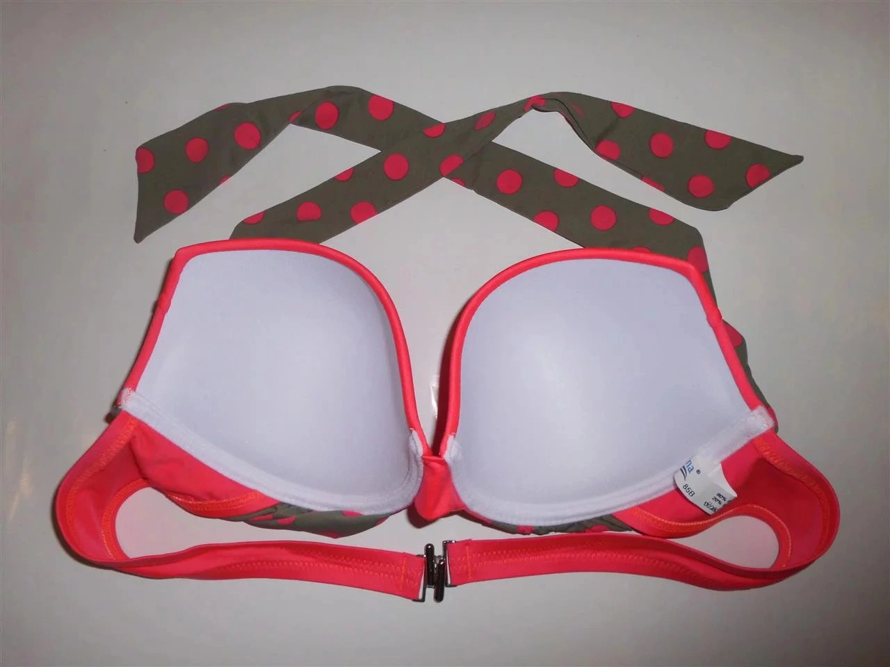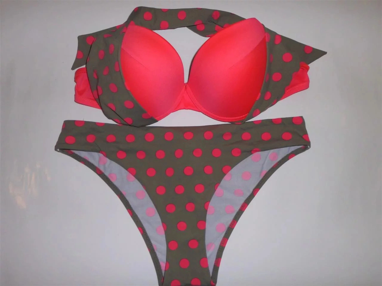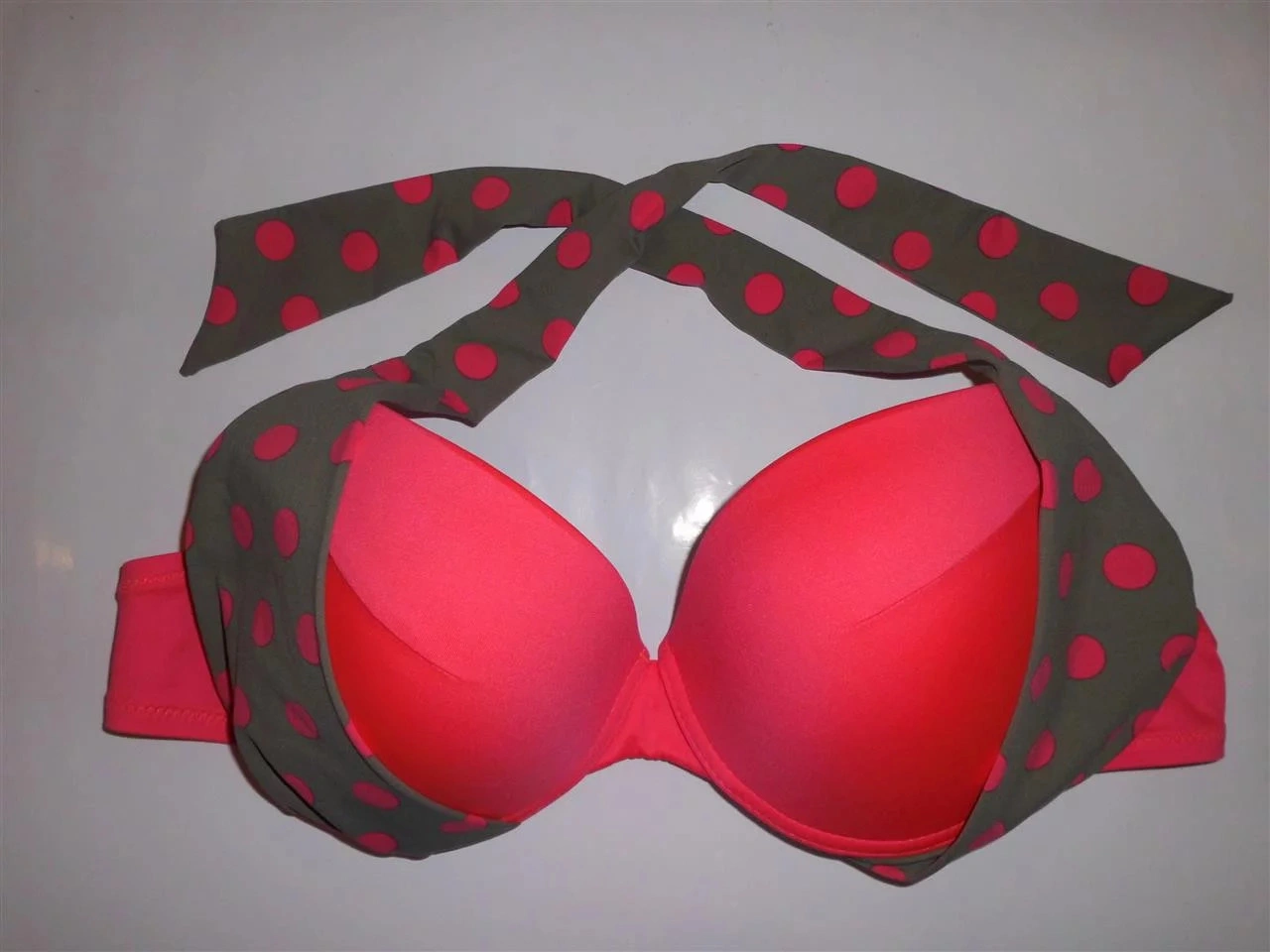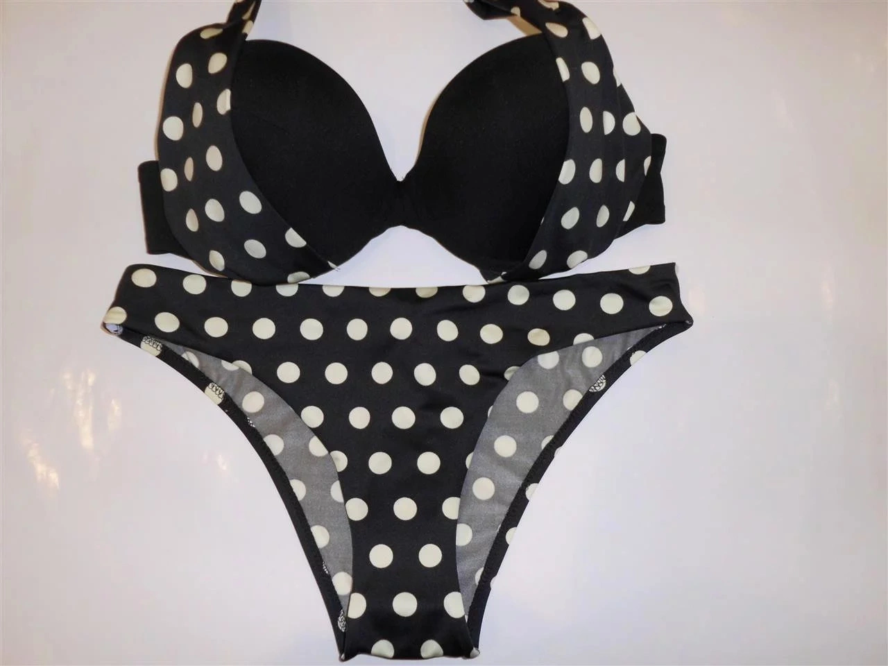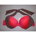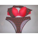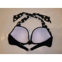 Vystužená push-up podprsenka. Nastaviteľné ramienka možno uviazať tiež za krkom. Vhodné nohavičky Le