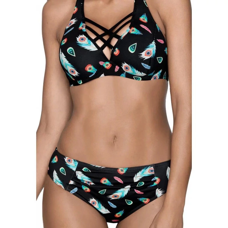 Dámske bikiny pre letné dni, kombinácia klasickej čiernej s farebným vzorom.