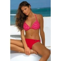 Pokiaľ dávate prednosť nenápadným, jednoduchým bikinám, neváhajte siahnuť po modeli Luna. Elegantné, sexy a veľmi decentné plavky. Vrchný diel tvorí vystužená podprsenka s trojuholníčkovými košíčkami. Výstuha je jemná, penová, s anatomicky tvarovanou vypchávkou v spodnej časti. Látka je károvaná, modrú farbu dopĺňa biela. Obvod sa smerom dozadu zúžuje a prechádza do elastických šnúrok, vďaka ktorým je možné jeho veľkosť regulovať. Ramienka za krk sú tiež na zaväzovanie. Mierne nariasená látka na košíčkoch umocní efekt modelácie a nechá prsia pekne vyniknúť. Spodný diel tvoria mini bikiny. Nohavičky úzkeho a nižšieho strihu. S podšitou prednou stranou, aby všetko zostalo skryté aj po namočení. Látka je tmavo modrá, lemovanie je doplnené elastickou gumičkou. Boky zdobia károvaný pruh tkaniny, ktorý nemožno regulovať, ale dodáva plavkám väčší šmrnc. A pekne zvýrazňuje boky. Na prednej strane nohavičiek vyniká logo výrobcu Marko. Klasický, hladký model, ktorý sa nenechá zahanbiť najnovšími kúskami.