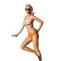 Originálne dvojdielne plavky Palermo Ewlon majú nohavičky z oranžovej látky. Farebná podprsenka s posuvnými košíčkami sa zapína za krkom aj na chrbte. Podprsenka je vystužená vyberateľnými vypchávkami, ktoré tvarujú poprsie. Po ich vybratí sa vytvoria jednoduché mäkké koláčiky.