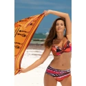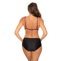 Dvojdielne plavky pre väčšie poprsie s hlbokými a pohodlnými košíčkami. Podprsenka bez push-up, zapínanie na chrbte. Vyššie nohavičky s pohodlným strihom. Strih zakrýva bruško. Vyrobené z talianskej tkaniny Carvico Tessuti. Poľský výrobok. Tip: objednajte si väčšiu veľkosť ako obvykle.