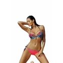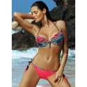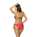 Ponúkané plavky značky Marko sa skladajú z krásnej farebnej podprsenky viazanej za krkom, ktorá vďaka zaujímavému tvaru košíčkov dokonale zvýrazňuje prsia. Spodný diel tvoria nohavičky viazané na bokoch v mimoriadne krásnom farebnom prevedení, pričom v hornej časti podprsenky je farebný pásik, ktorý nadväzuje na motív použitý na podprsenke.