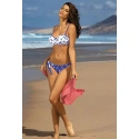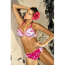 Roztomilé hviezdy a dizajn priamo z USA... Nech si vyberiete akúkoľvek pláž, tieto plavky si zamilujete. Veľmi pekný dizajn šálok. Sú silne vystužené a špeciálne tvarované (vďaka čomu prsia vyzerajú mimoriadne hypnoticky). Spodná časť je vystužená. Vo veľkostiach S, M, L sú zahrnuté push up košíčky. Výsledok? Silné zhromažďovanie poprsia, sexy zdvíhanie a zväčšovanie. Veľkosti XL, 2XL majú len vystužené košíčky bez push up - zmyselne zvýrazňujú ženské krivky. Uprostred je (odnímateľná) visačka v podobe niekoľkých strieborných hviezdičiek. Veľmi pôsobivé farby. podprsenka sa zaväzuje za krkom a na chrbte. Nohavičky veľmi elegantne zvýrazňujú líniu bokov. Zadná strana hladká (tmavomodrá). Výrobok najvyššej kvality, potvrdený hologramom, vyrobený z talianskej tkaniny Carvico Tessuti, odolný voči slnečnému žiareniu a sile trenia piesku, dokonale kryje telo, rýchloschnúci.