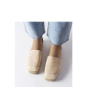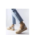 Béžové espadrilky s brokátovou stielkou Myasia sú dokonalou obuvou na leto. Sú vyrobené z kvalitnej ekologickej kože, ktorá zaručuje pohodlie a odolnosť. Vďaka nízkemu podpätku a absencii podšívky sú ideálne na teplé dni. Podrážka z béžovej gumy zaručuje stabilitu a pohodlie pri chôdzi. Zapínanie na pracku umožňuje jednoduché prispôsobenie topánky vašej nohe. Tieto espadrilky budú určite skvelým doplnkom vášho letného šatníka.