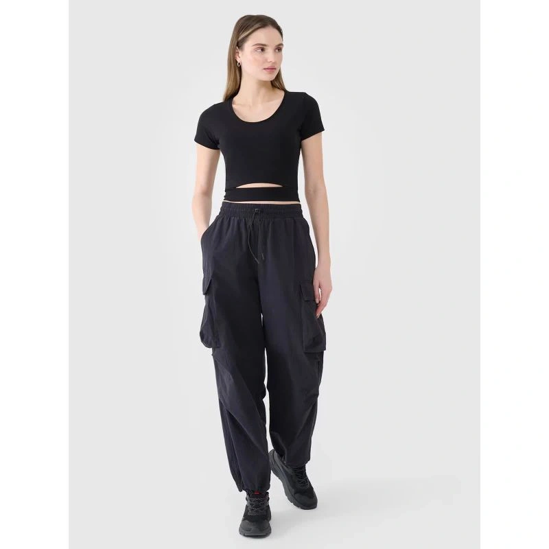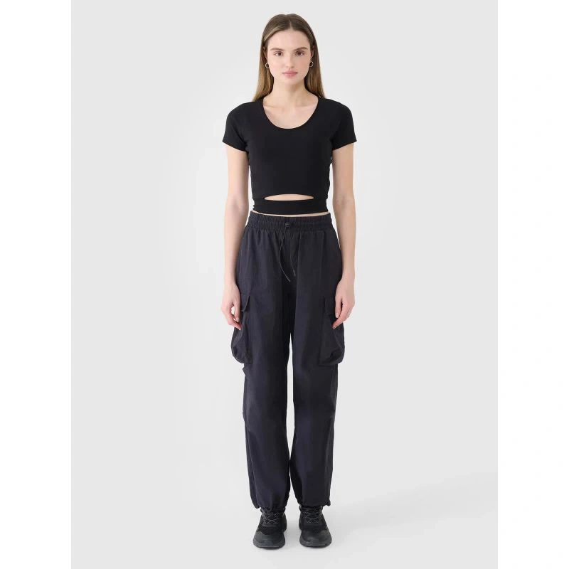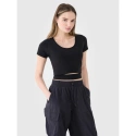 Tričko je vyrobené z 95 % bavlny, vďaka čomu je mäkké, príjemné na dotyk a odolné, zatiaľ čo prídavok 5 % elastanu zabezpečuje pružný a uvoľnený strih. Okrúhly výstrih s miernym rebrovaním a ozdobný výrez na prednej strane pod prsiami dodávajú tričku moderný nádych.