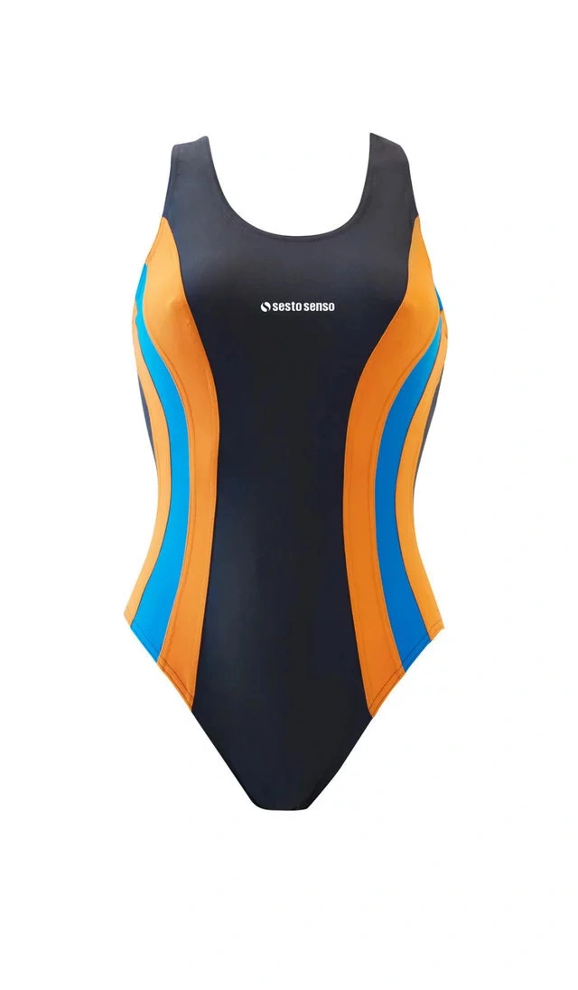 Dámske jednodielne plavky 715 - Sesto Senso XL grafit-oranžová-modrá