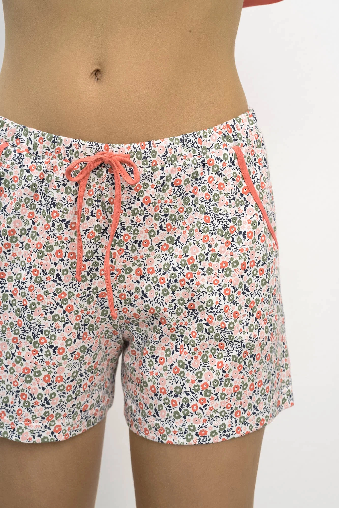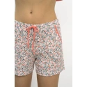 Dámske krátke pyžamo. Vrchný diel jednofarebný v štýle babydoll, na ramienka, spodný diel krátke nohavice farebné.