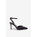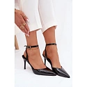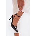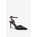 Dámske lodičky vyrobené z lakovanej ekokože. Lesklý dizajn vyzerá na nohe krásne a špicatá špička dodáva celku štíhlosť. Model má nastaviteľný remienok so sponou, vďaka ktorému sa topánka ľahko prispôsobí nohe. Ženské, klasické a nadčasové - ideálne na večerný styling. Pri výbere veľkosti sa riaďte veľkostnou tabuľkou. Pri výbere veľkosti sa riaďte veľkostnou tabuľkou.