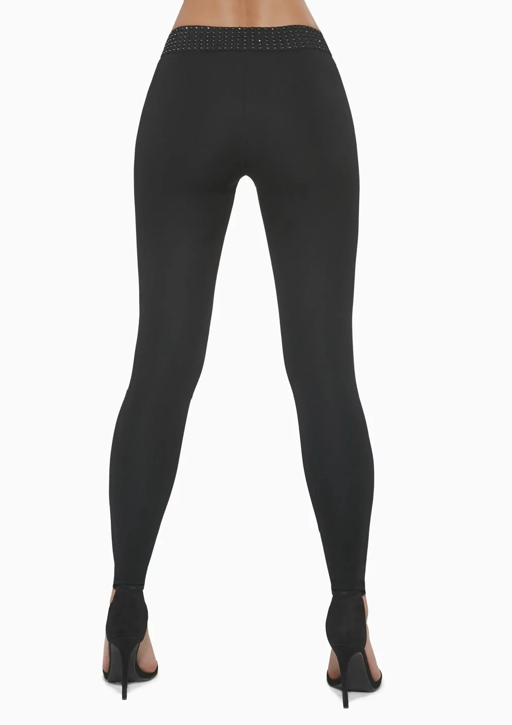 - legíny so širokým elastickým pásom s ozdobnými kovovými prvkami