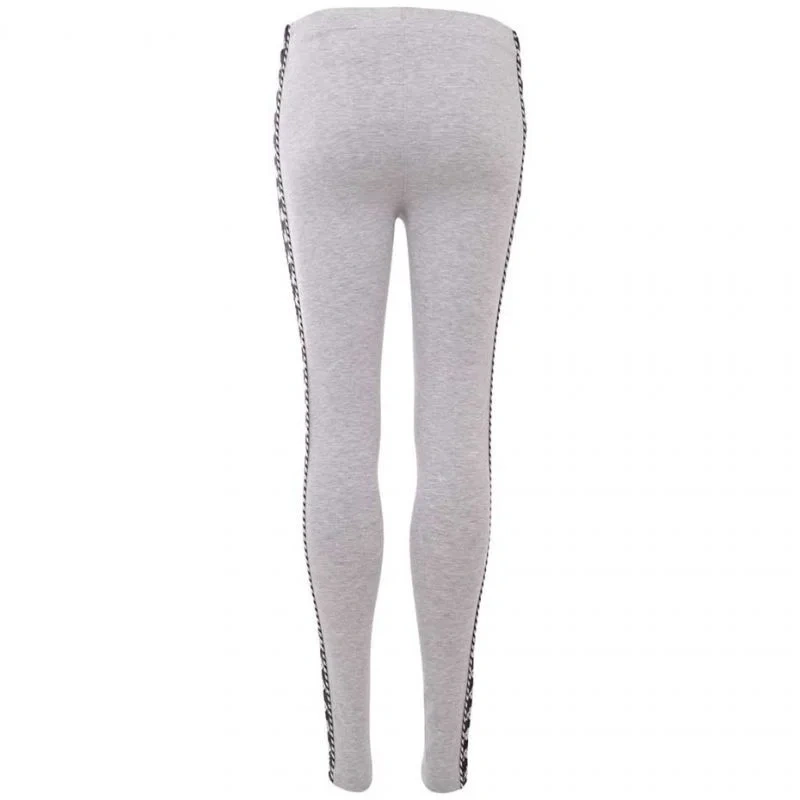 - Šedé legíny doplnené bočnými pruhmi s logom výrobcu.