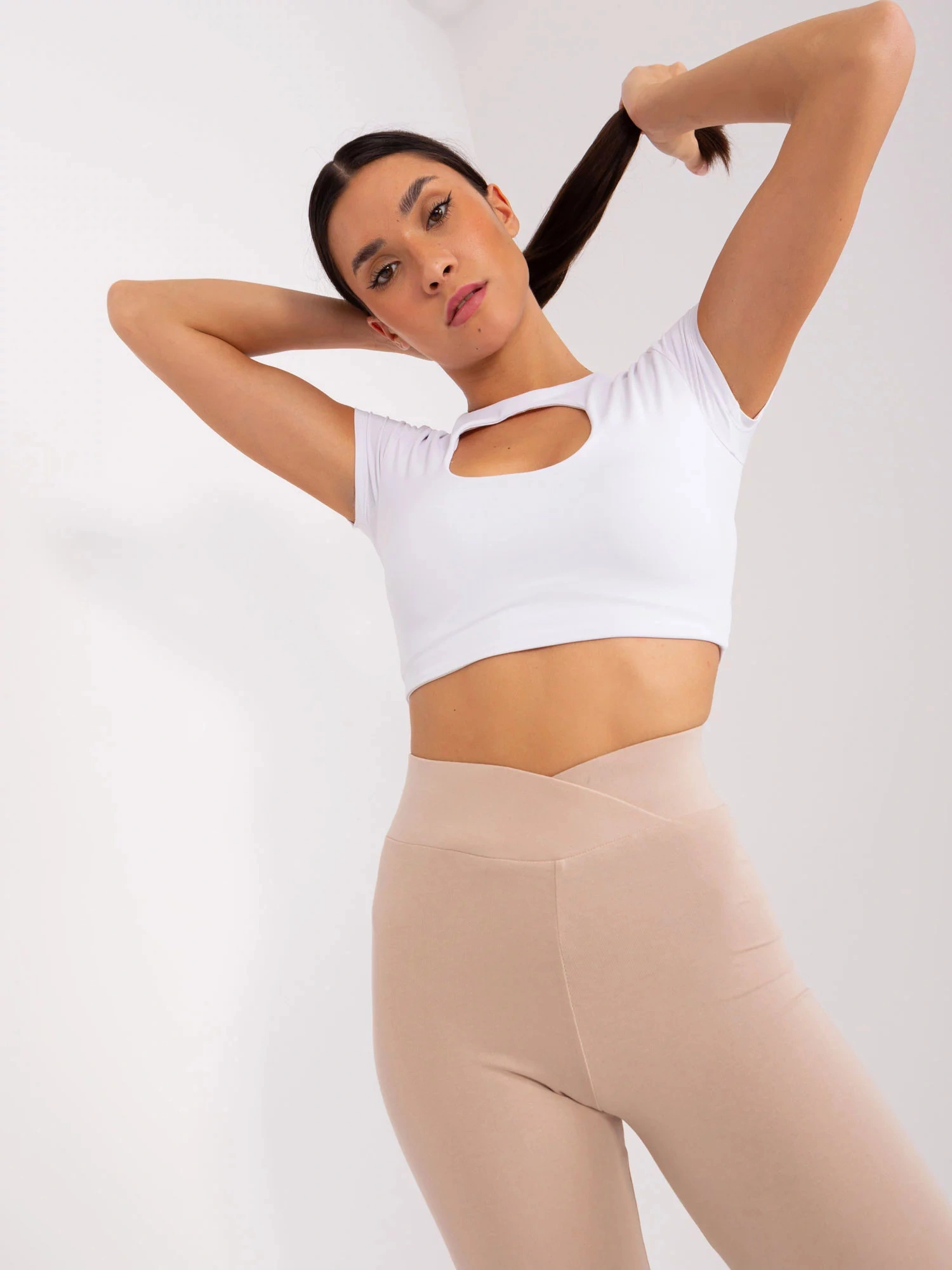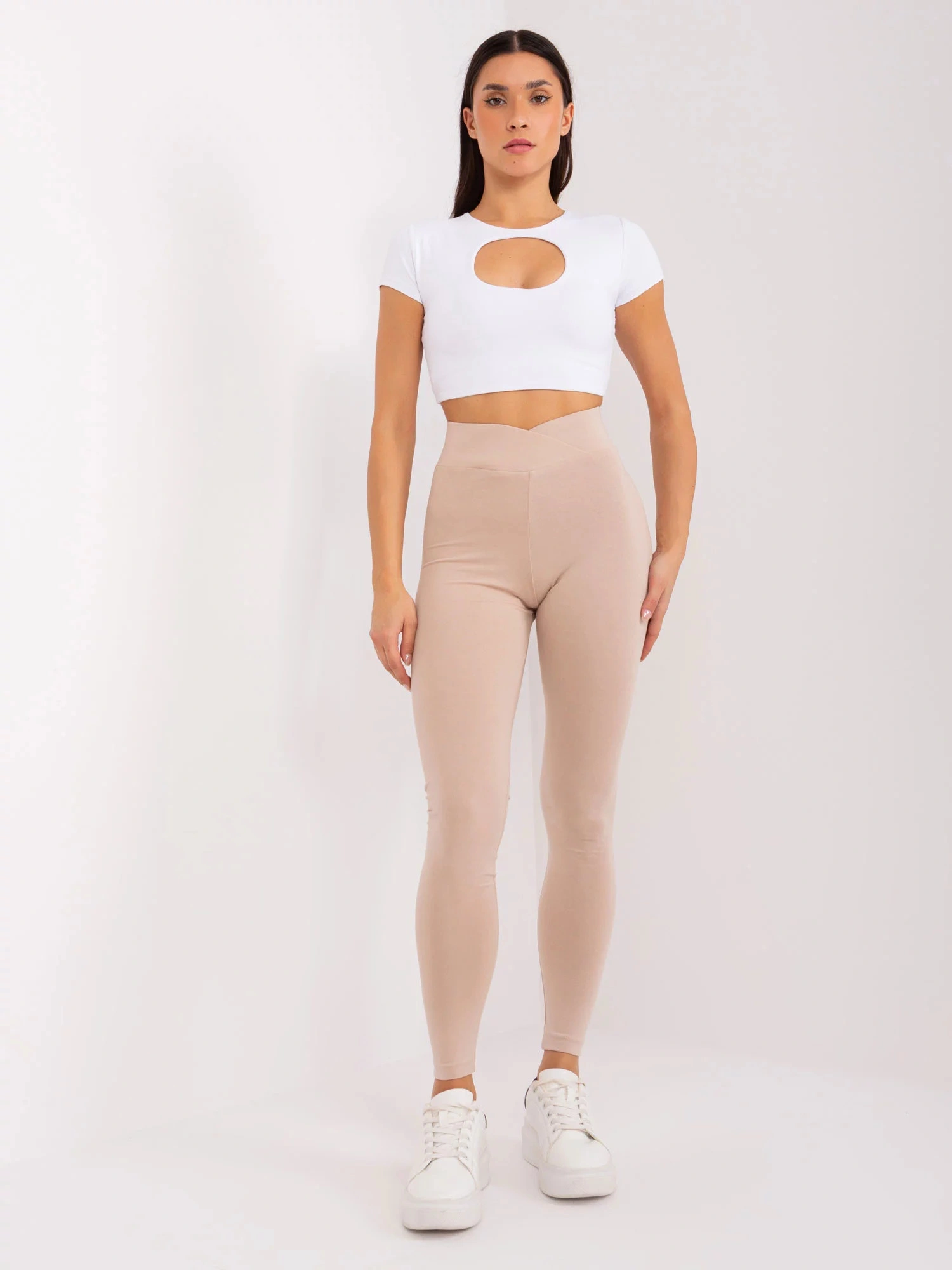 Béžové základné legíny s vysokým pásom od značky RUE PARIS .