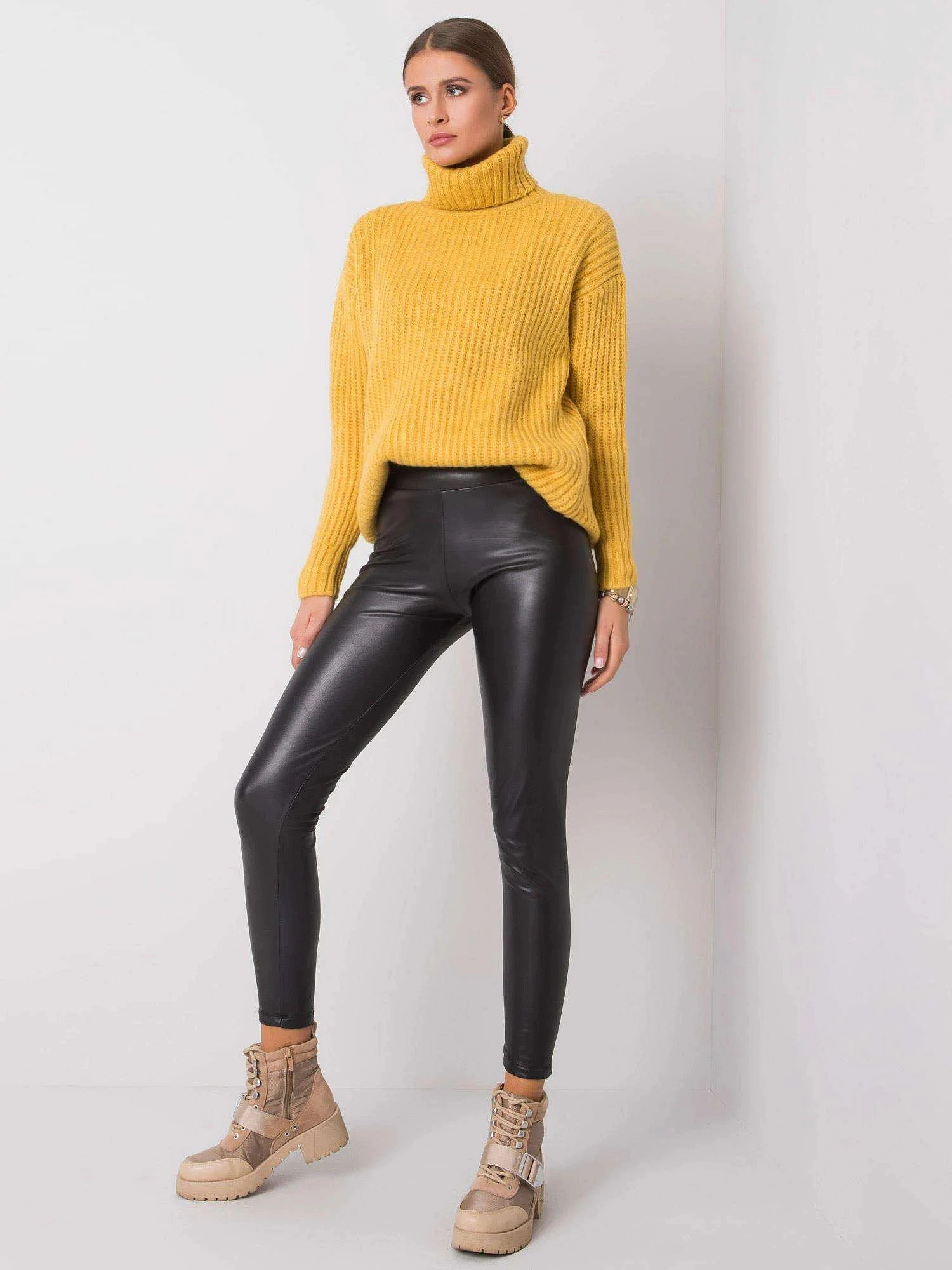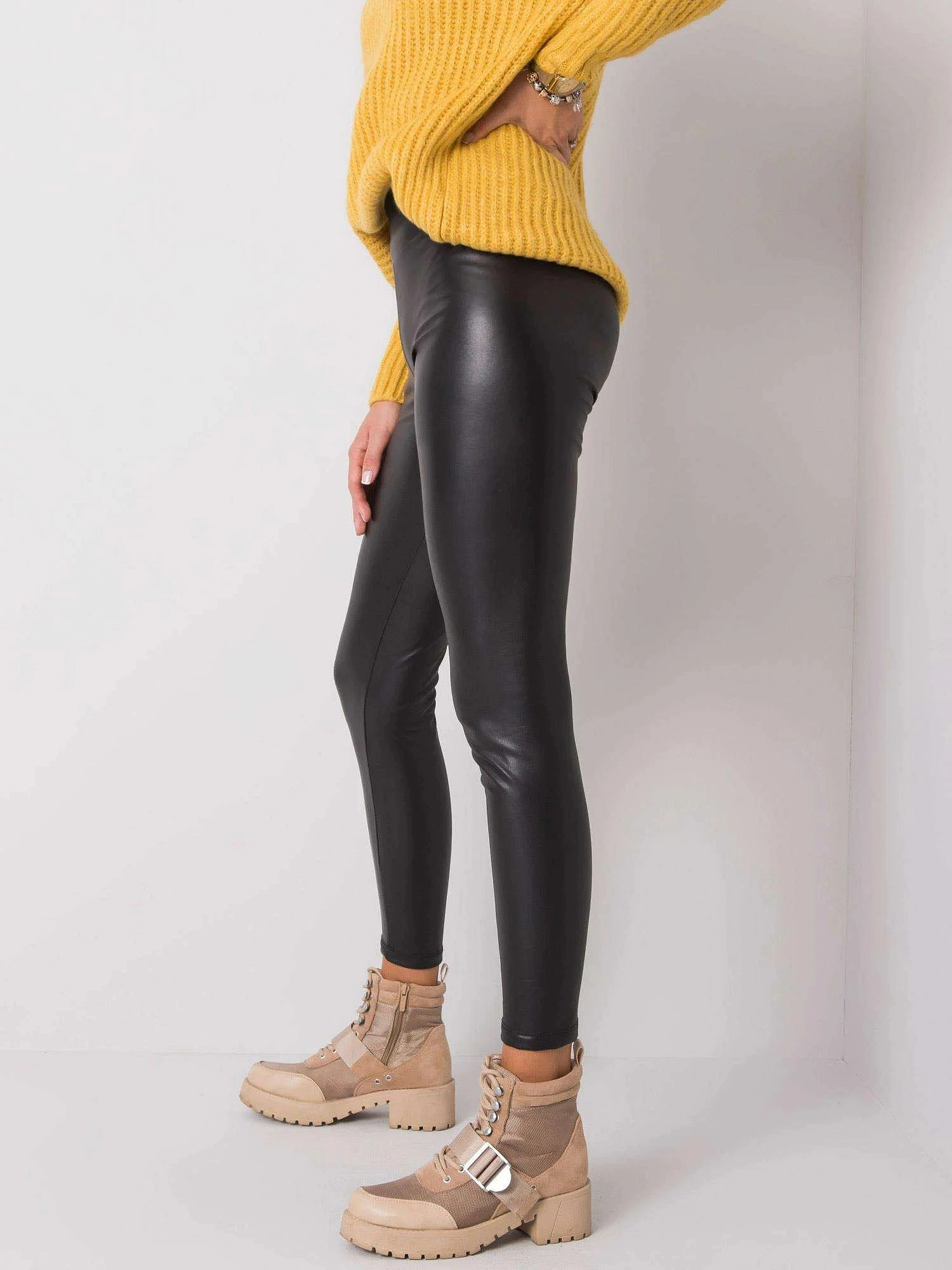 RUE PARIS Čierne kožené legíny.