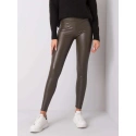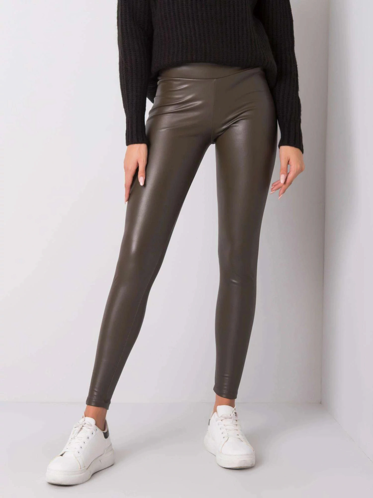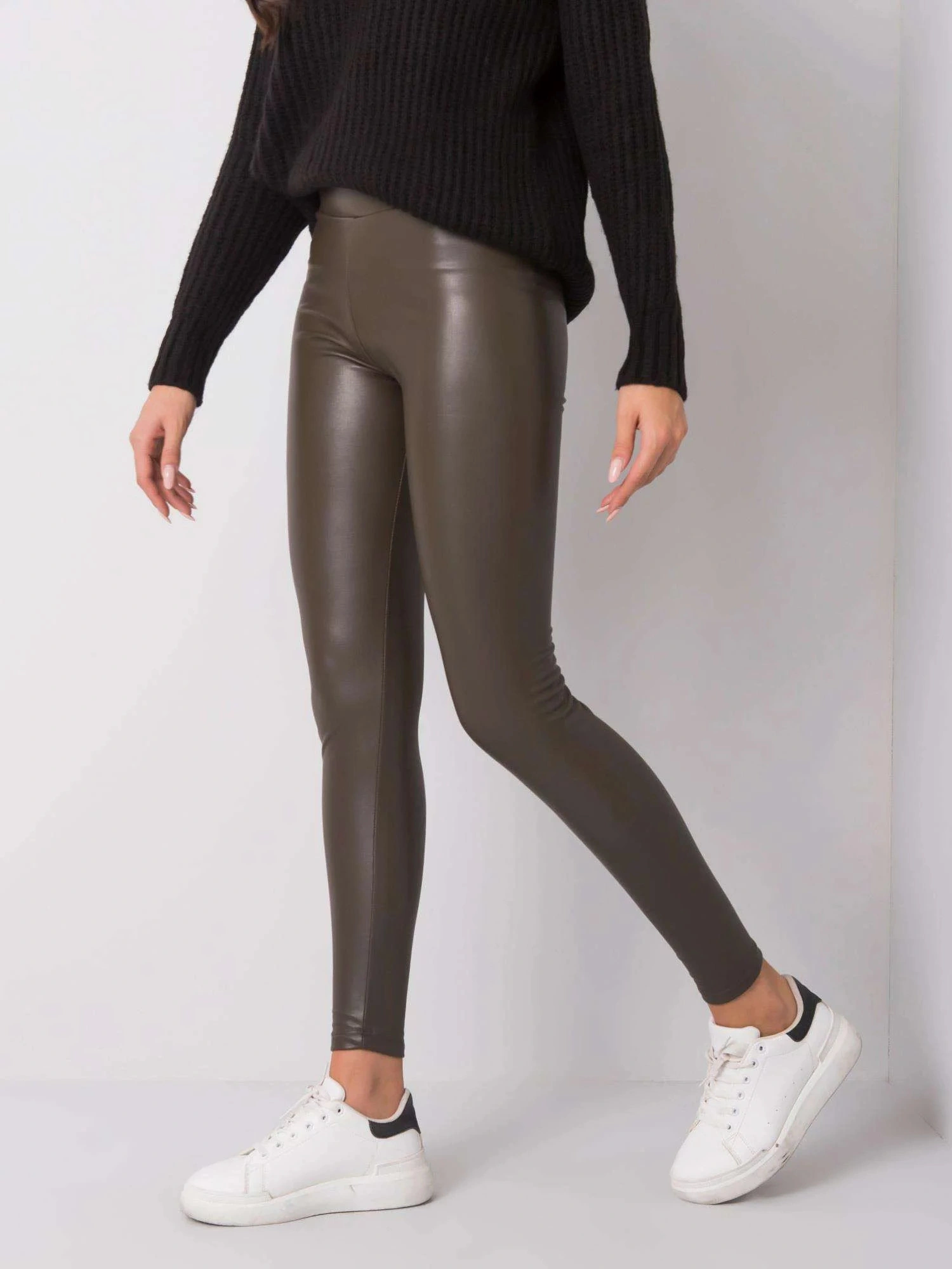 RUE PARIS Tmavo khaki legíny z ekokože .