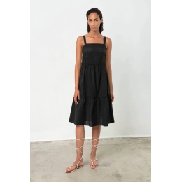 Pohodlné dámske letné šaty vyrobené z kvalitnej prírodnej egejskej žakárovej bavlny, ktorá poskytuje vysoký komfort, príjemný dotyk, priedušnosť, pružnosť a odolnosť.