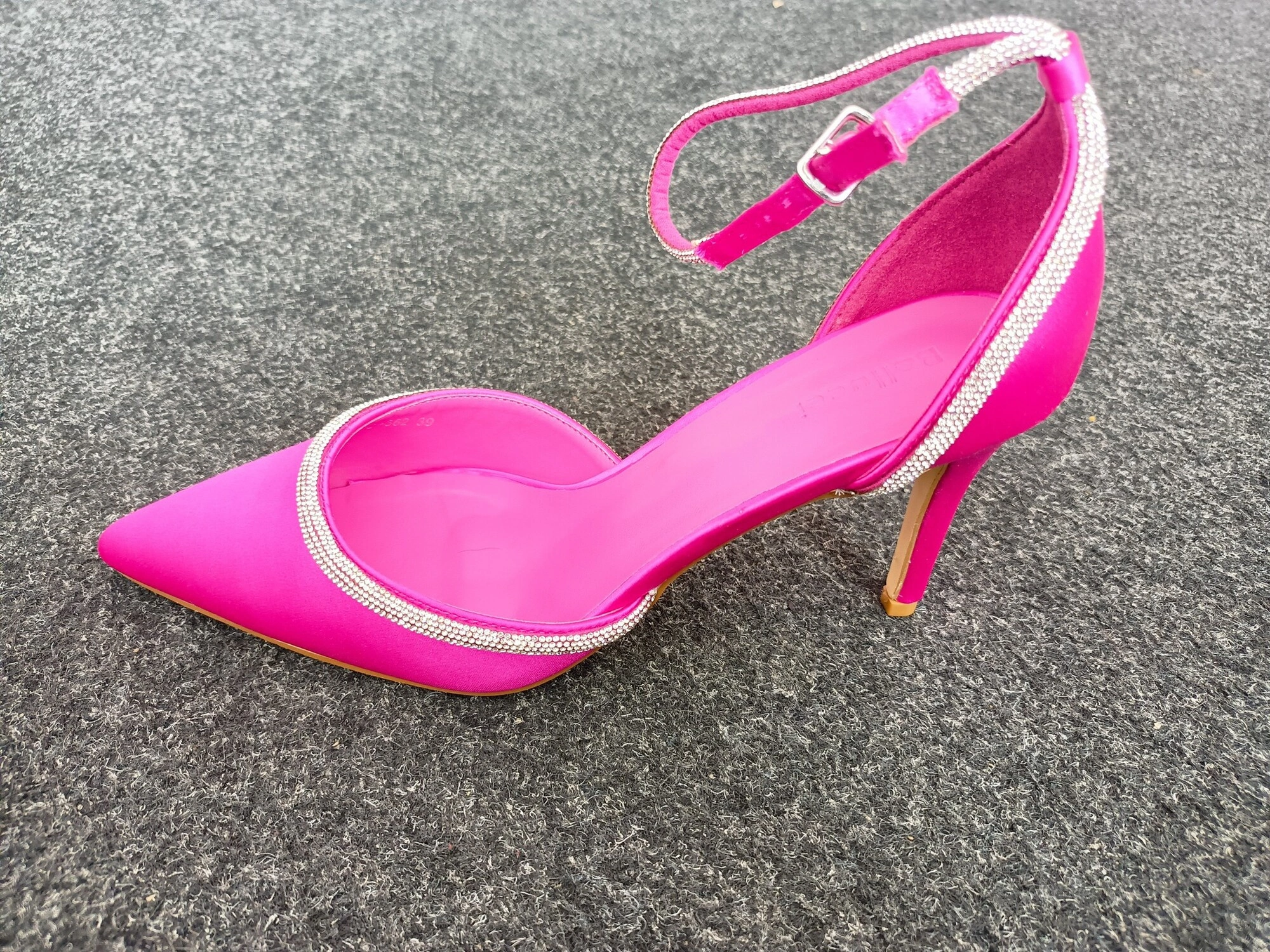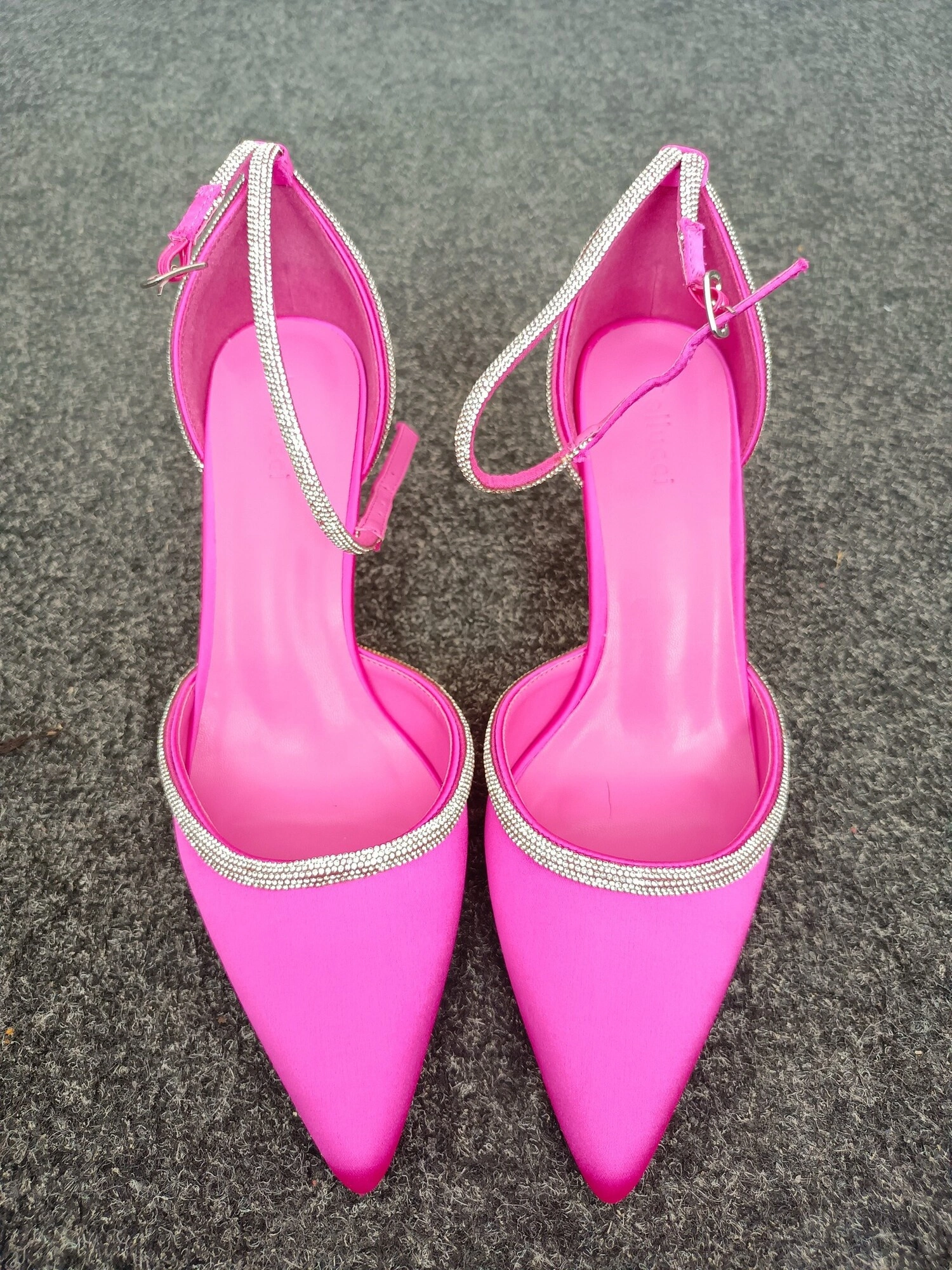 Dámske luxusné, jemne lesklé fuchsiové lodičky so špicatou špičkou,