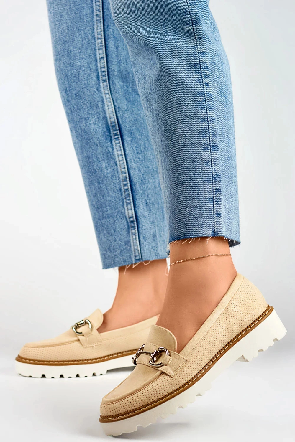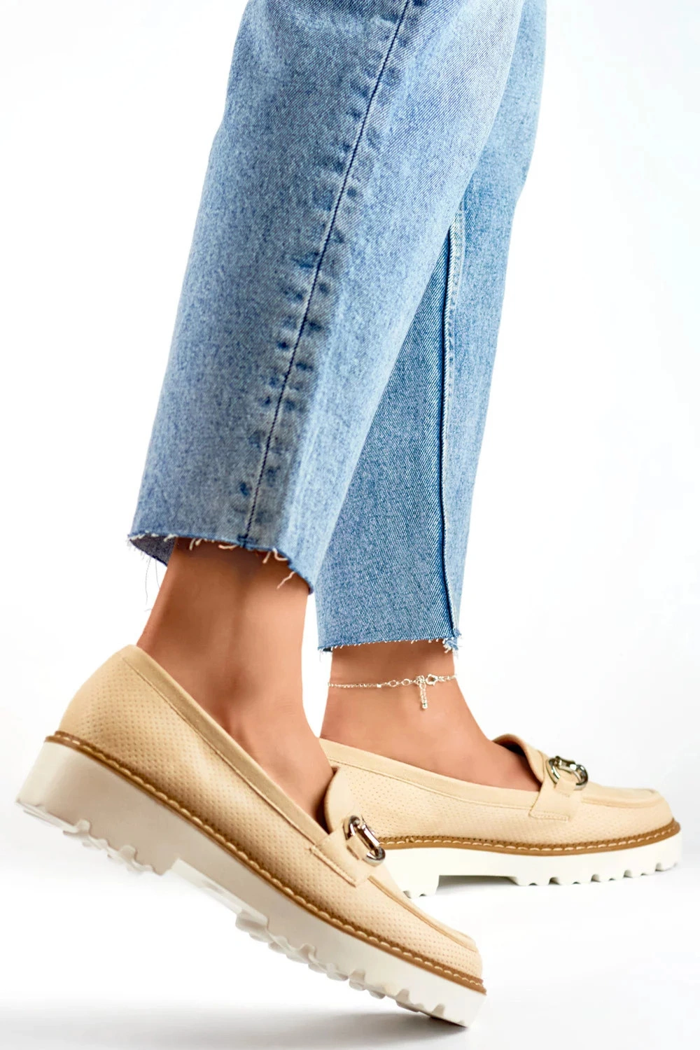 Poltopánky v jemnom béžovom odtieni sú sofistikovanou obuvou spájajúcou pohodlie s eleganciou, vytvorenou pre moderné ženy, ktoré ocenia pohodlie aj štýl. Zvršok z ekologického semišu dodáva topánkam mäkkú a jemnú štruktúru a zároveň sa stará o životné prostredie. Tieto béžové poltopánky pre ženy sú ideálne na jar a leto, ale vďaka svojmu nadčasovému dizajnu sa dajú nosiť po celý rok a predstavujú univerzálny doplnok k rôznym outfitom. Stielka z ekokože poskytuje pohodlie a zároveň sa prispôsobuje tvaru chodidla. Tieto poltopánky majú stabilný 3,5 cm podpätok, ktorý im dodáva eleganciu a zároveň je pohodlným riešením na každodenné nosenie. Vďaka nazúvaciemu dizajnu sa ľahko nosia a sú praktickou voľbou na rôzne príležitosti. Okrúhla špička dodáva topánkam klasický vzhľad a vďaka béžovej farbe ekokože sú ľahké a mäkké. Tieto béžové poltopánky sú jedinečnou kombináciou štýlu, pohodlia a starostlivosti o životné prostredie.