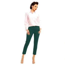 Zapínanie na gombík a zips s vreckami. Pohodlné a elegantné, 7/8 nohavice, vyšší pás. Vhodné na každú príležitosť: do práce, na skúšky alebo na stretnutie s priateľmi. Odporúčame pre každú ženu, ktorá ocení dokonalý vzhľad každý deň. Jedinečný strih, elegantný a šik, dokonale prispôsobený, prepracovaný v každom detaile, dokonalý doplnok každej štylizácie.
